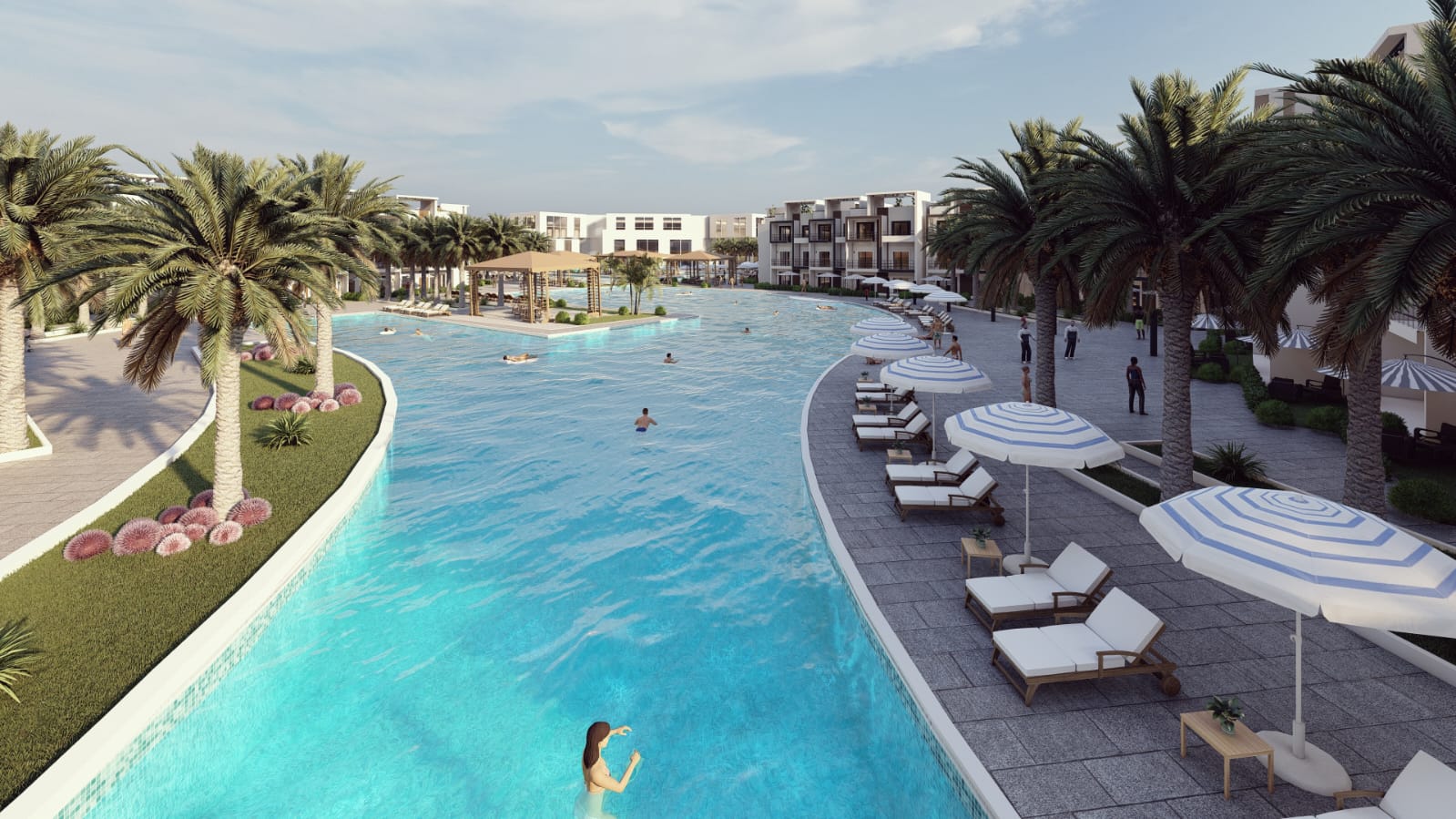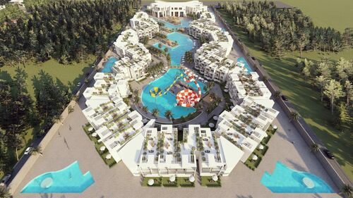 The developer wants to set new standards and bring the service of a holiday hotel to the resort. The buildings, each with a maximum of 2 floors, are distributed like cubes over the almost 45,000m² site and cover a maximum of 20% of the total area. This leaves a large area of of 36,000m² for fun, water and slide paradise. An incredible family experience - pure vacation! Your vacation paradise with a pleasure factor!