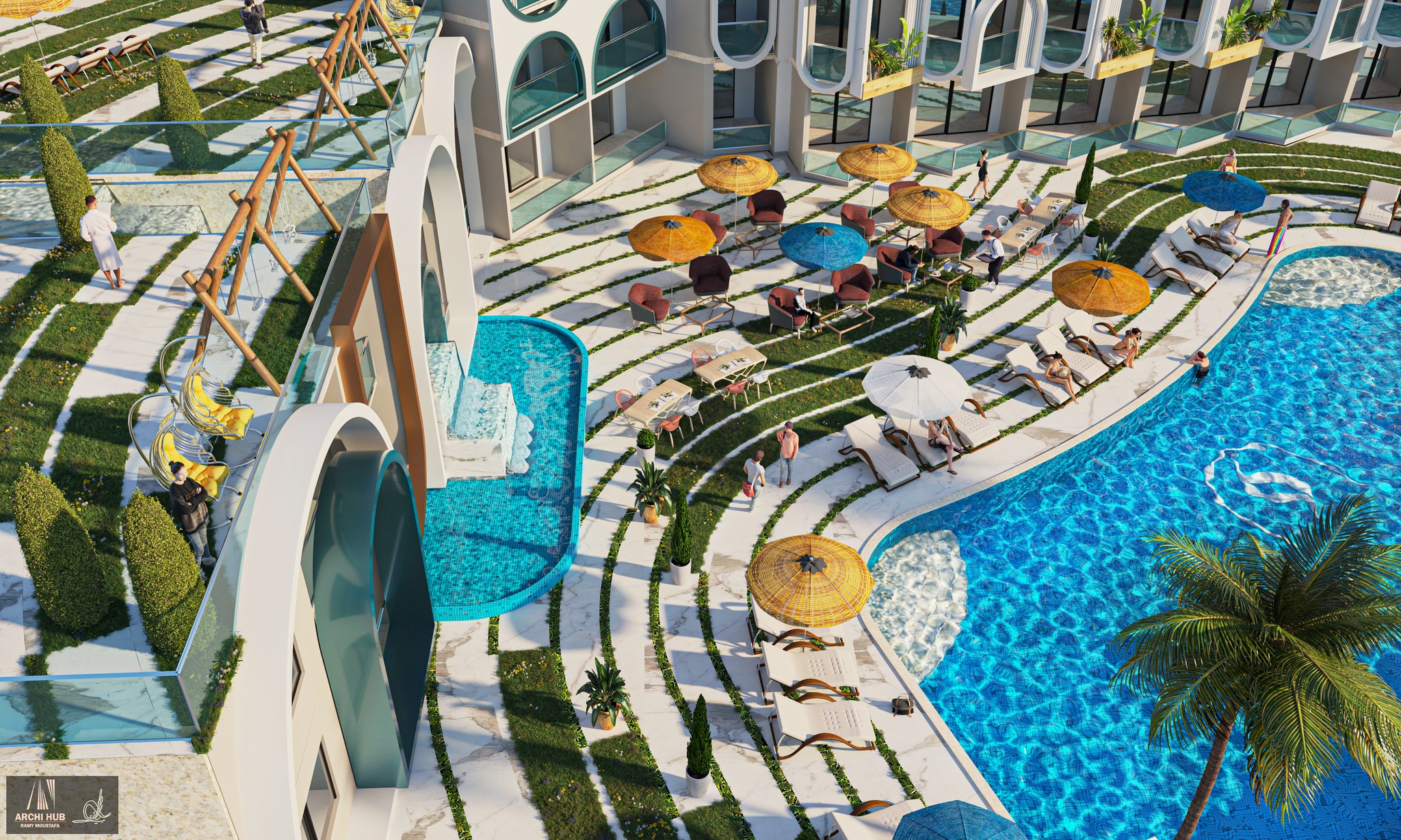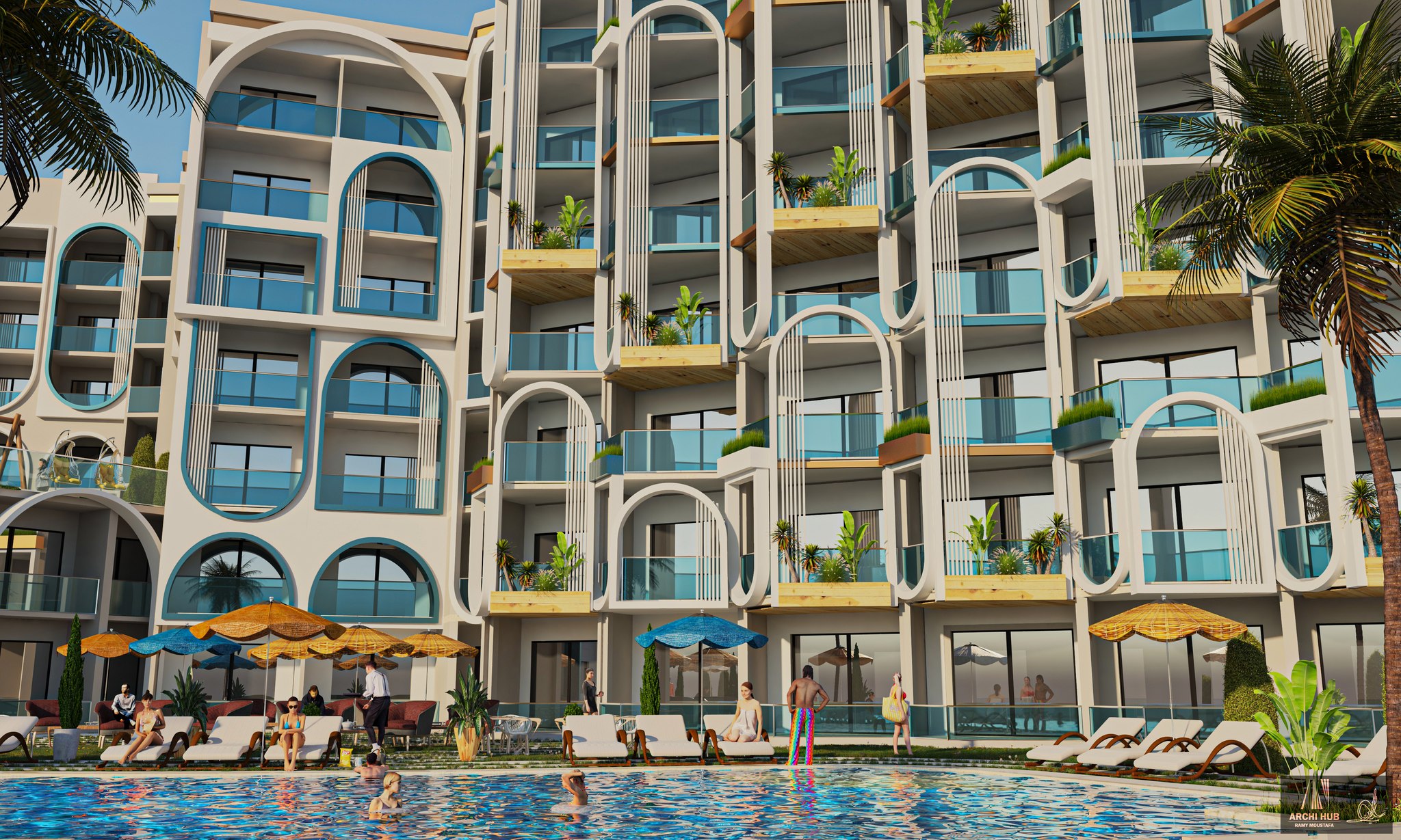 The development features expansive outdoor spaces, including a beautiful swimming pool, well-maintained gardens, and a peaceful terrace. Each apartment is designed with large windows and balconies to maximize the stunning views.