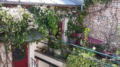 The small house is located in a pedestrian impasse appreciated by hikers and its inhabitants for its greenery and its silence.