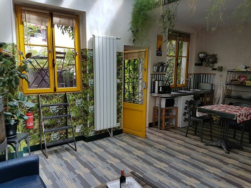 You have a kitchen and dining area, a living room, a bathroom with an Italian shower. You can enjoy a small private terrace (6 square meters) that will make you appreciate the calm of the impasse. In the morning, noon, evening, or any time of the day you can take the time to settle there to start your day quietly in an intimate and romantic place.