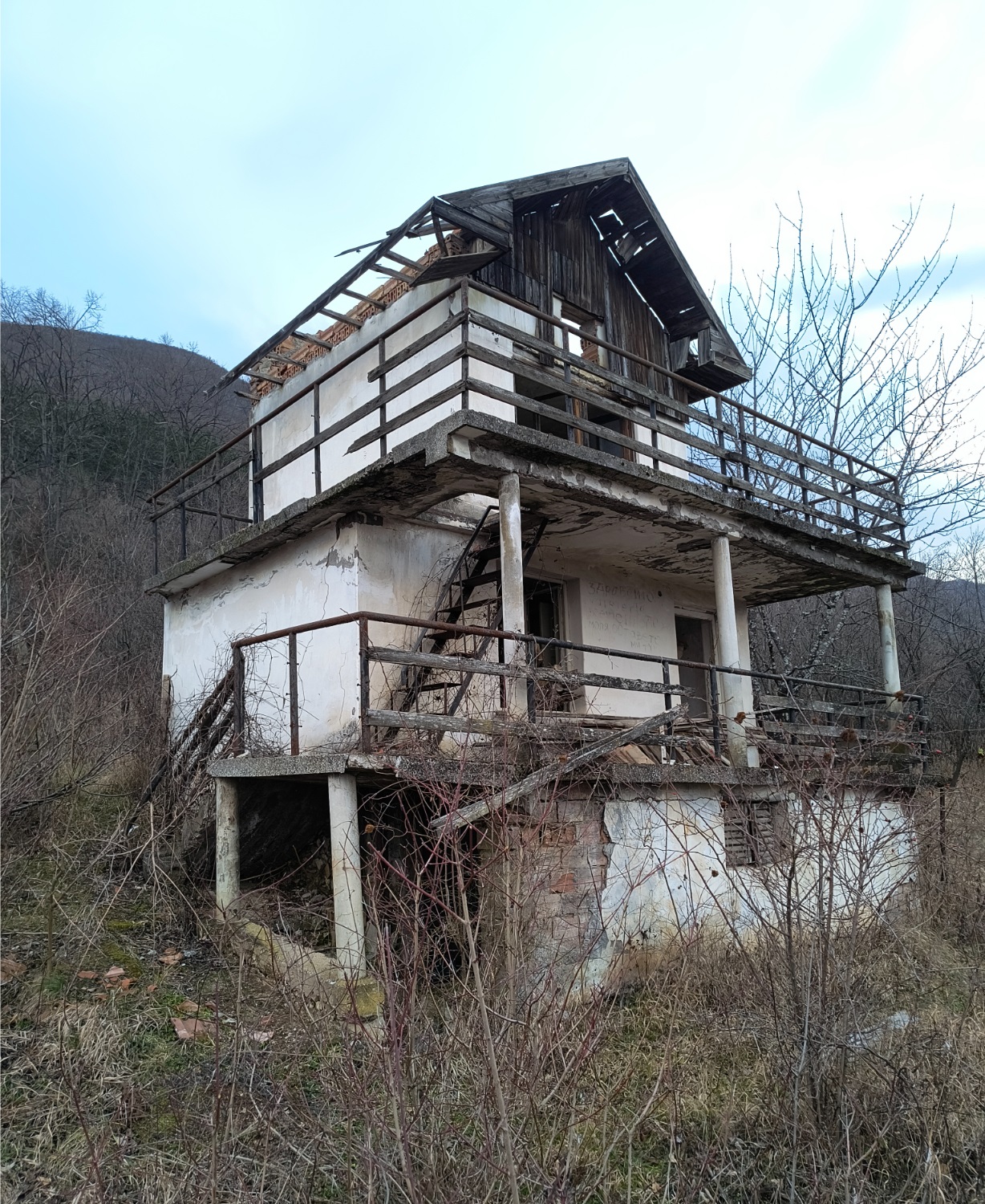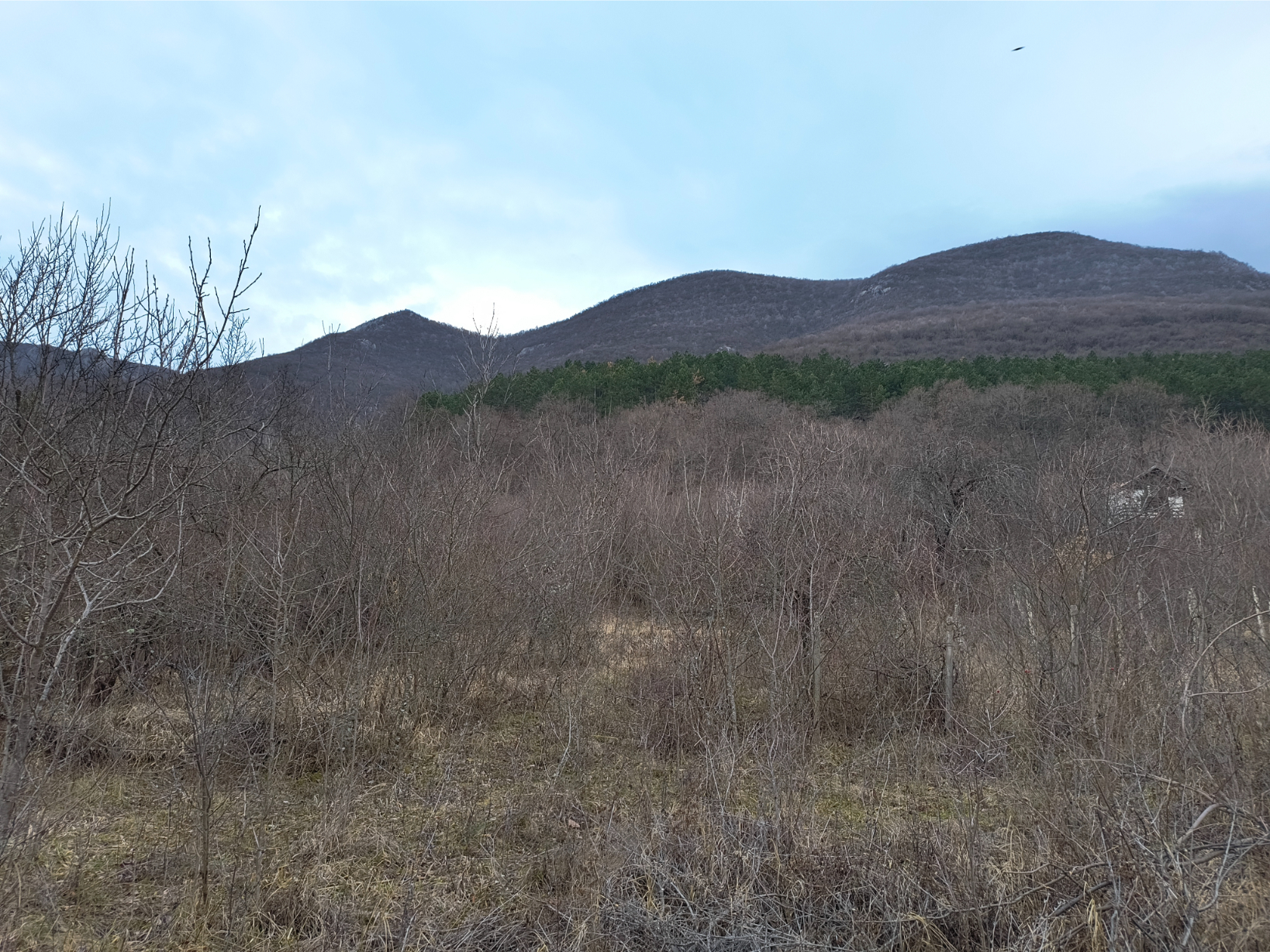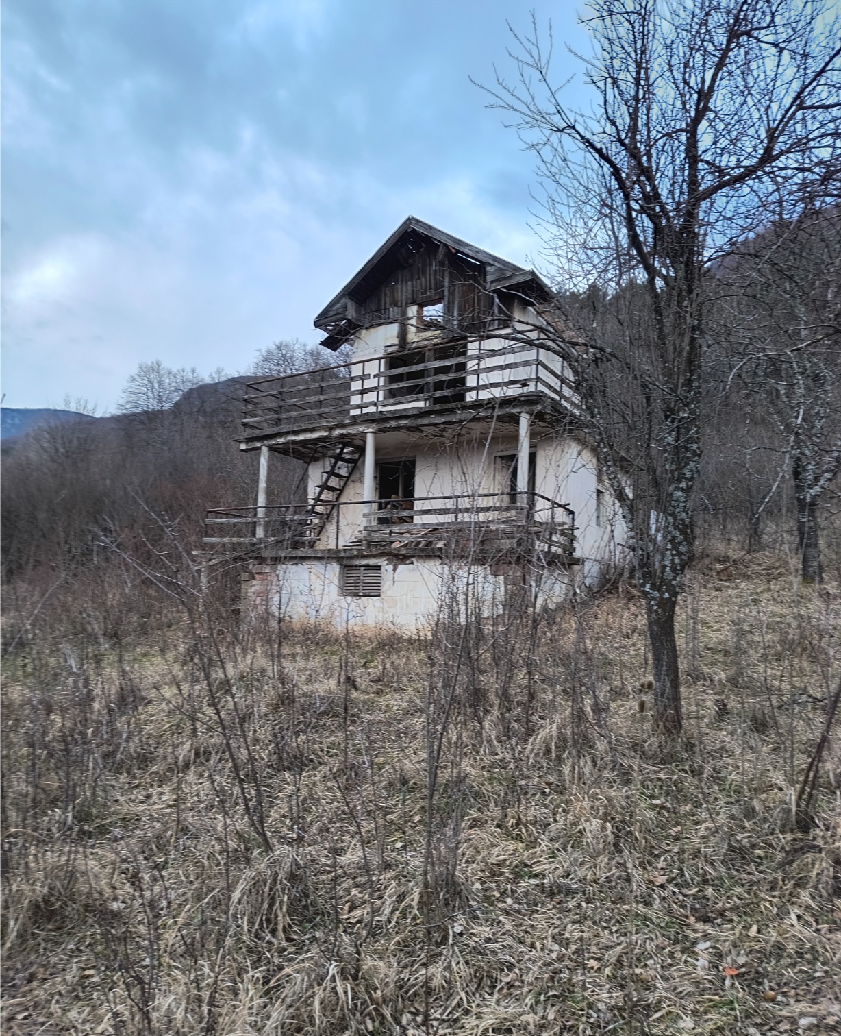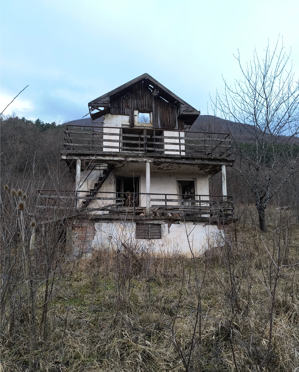 Old villa with big plot of land and nice views situated in the mountains 10 km away from Vratsa, Bulgaria. The villa has two floors. The ground level holds big terrace with panoramic views and two rooms which were used as living room and kitchen. Over the external stairs one can go to the second floor where one spacious bedroom and another terrace can be reached. There is also a storage room beneath the ground floor. Not far away from the villa one can find a small bungalow with one room. The plot of land that comes with the villa offers a great amount of space which used to have vineyard and fruit trees in the past but now is very overgrown and needs a good cleanup. The villa is currently in bad condition and requires repairs. The property has its own water source – a fresh water well. Due to its location, the villa does not have electricity but a solar electrical system can be installed in order to provide sufficient supply of electricity for the place. The property is about two miles away from paved road and about 5-6 miles away from the City of Vratsa. The surrounding area is very peaceful and scenic. From here one can admire views towards the near mountain range, the trees and meadows in vicinity or the panorama of the whole valley. The nearby city of Vratsa is the regional center for the area and offers many shops and stores, restaurants & bars, disco, theater, cinema, big library, schools and kindergartens, regional hospital, administrative services, police station, fire station, many gas stations, coffee shops, car service stations, furniture stores, shops for tools, clothes, electrical appliances, pharmacies, dental services, etc. There is also a historical museum, several hotels, motel, gyms, bus and train station with direct connections to the national capital city Sofia and many other parts of Bulgaria. The vicinity of Vratsa offers several famous tourist sites such as ski track, national park, big cave, lake, historical monuments, etc. Cheap property with nice views and vast yard situated within easy reach to big city and modern day living.
