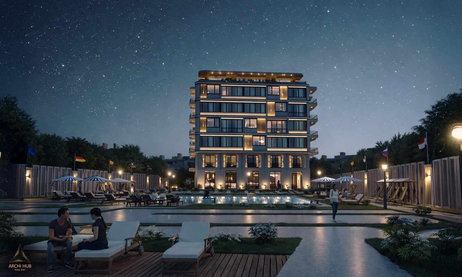 11 sparkling pools and beautifully landscaped gardens