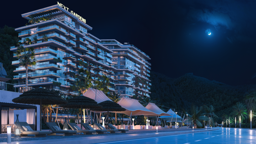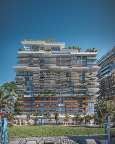 Designed by NEXT Group, this residential and mixed-use development lies directly on the first coastline, offering breathtaking sea and mountain views. With natural tones, modern lines, and sustainable materials, NEXT Gardens embodies a new lifestyle concept — a balance of wellness, nature, and sophistication.