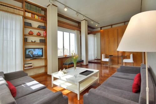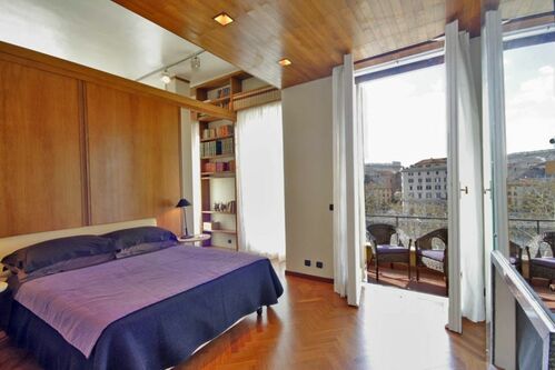 The ideal choice for a romantic stay, our TIBER VIEW apartment, on the fourth floor with a bedroom with balcony, a bathroom with a modern shower box and a kitchen, the bright and elegant living room is completed by a terrace with a magnificent view on the Tiber, Castel Sant'Angelo and the Ara Pacis of Augustus and can accommodate up to 4 people using the 2 sofa beds in the living room.