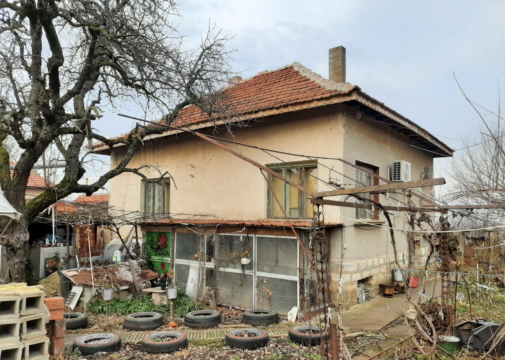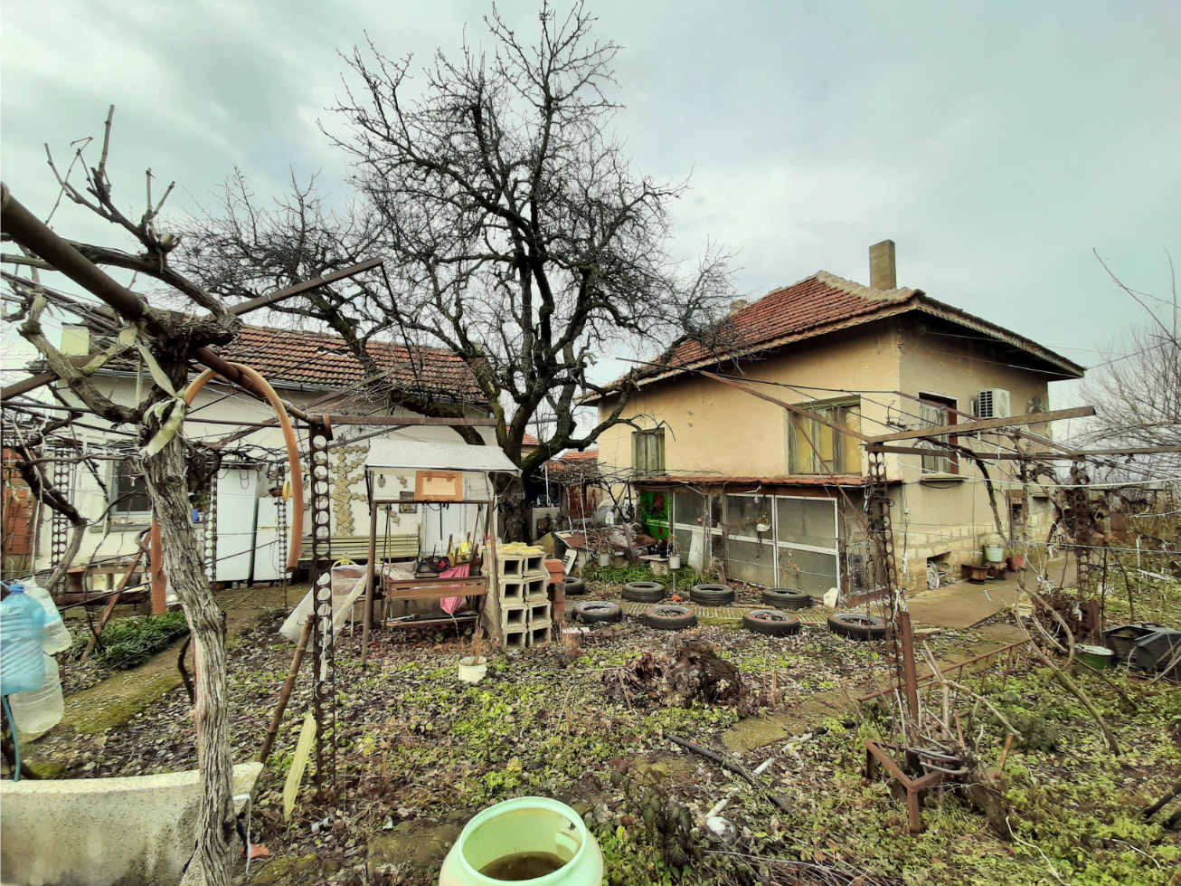 Big rural property with house, annex, double garage, barn, farm buildings, greenhouse and land situated in a village near two lakes 45 km away from Vratsa, Bulgaria. The main building has two floors connected via short external staircase. The ground level consists of corridor and three rooms – living room, storage and basement. Above them one can find small terrace, spacious living room with sitting area and two bedrooms. The annex which is located behind the house has one floor and holds small shower room, corridor and kitchen. The owners planned an extension so a bedroom could be added here. The foundations, supporting beams and the bare structure are already done but there is more to add and finish here. The roof of the house had been revised last year as there were problems with it so now it is in good condition and will not need any repairs for several years to come. Opposite the house and the annex are the barn and the farm buildings. There are overall six premises there which served as storage and shelters for various animals like turkeys, sheep, chicken, etc. The property offers a spacious yard of just a bit over 2000 sq.m. In the garden one can find several fruit trees as well as some open space, fresh water well and an old greenhouse. The latter certainly needs attention as its structure is still in place but all the glass had been damaged and destroyed by big hail storm two years ago and since then it had been out of use. The property described above comes with additional piece of land located across the street. The extra plot has an area of about 1500 sq.m. and has views towards the fields, distant hills and one of the lakes. This piece of land is included in the price of the house and is for sale together with it. Currently it is covered with trees and bushes and needs a bit of clearing. The property is located in the outskirts of the village in a very peaceful area. There are overall four houses around but none of the is being used full time and two of them are being abandoned for many years now. The spot is very good for people with pets e.g. dogs, cats, etc. as the animals can enjoy the outdoor space and play in the sun, go for a walk with you across the fields and all of that without bothering neighbors or other people living in the area. The distance from the house to the lake is about one kilometer. The village where this property is situated is big and has several shops and bars, coffee shops, post office, mayor`s office, church, houseware store, pharmacy, park, etc. There is also a dentist in the area. The nearest town is the seat of the local council and is located about 10-15 km away from here. There one can find bank, emergency room, police station, fire station, construction material store, gas station, pharmacy, restaurant, several shops and supermarkets, library, school, kindergarten, etc. The town also has good bus connections with the regional capital city Vratsa and the national capital Sofia. The area around the village is used for farming and there is no other industry so lots of peace, quiet and fresh air are guaranteed. Big rural property with lots of potential at a fair price.