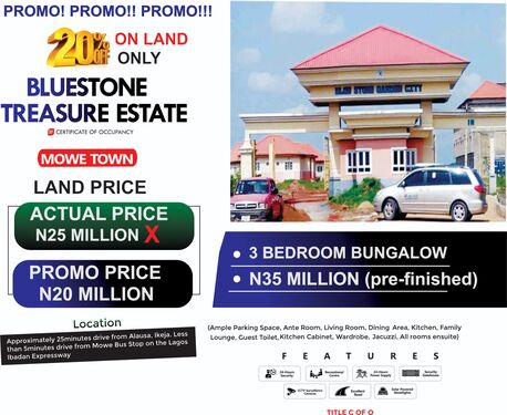 There in Bluestone Treasure estate, a plot of land is selling for N20 Million Promo price.