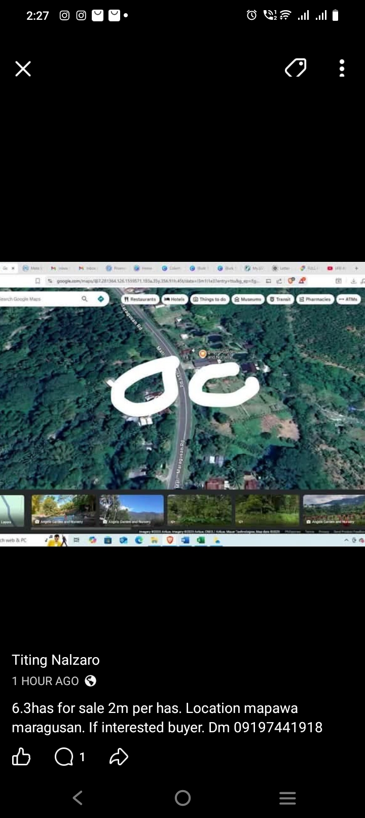 6.3has for sale 2m per has. Location mapawa maragusan.