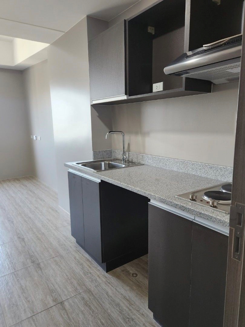 Studio Unit facing ADMU & Mirriam College. Floor Area: 25 sqm. Semi Furnished with 2-electric stove, rangehood, built-in kitchen cabinet, refrigerator,sink and counter top, bathroom shower, toilet sink, aircon, intercom, doorbell, provision for cable, telephone