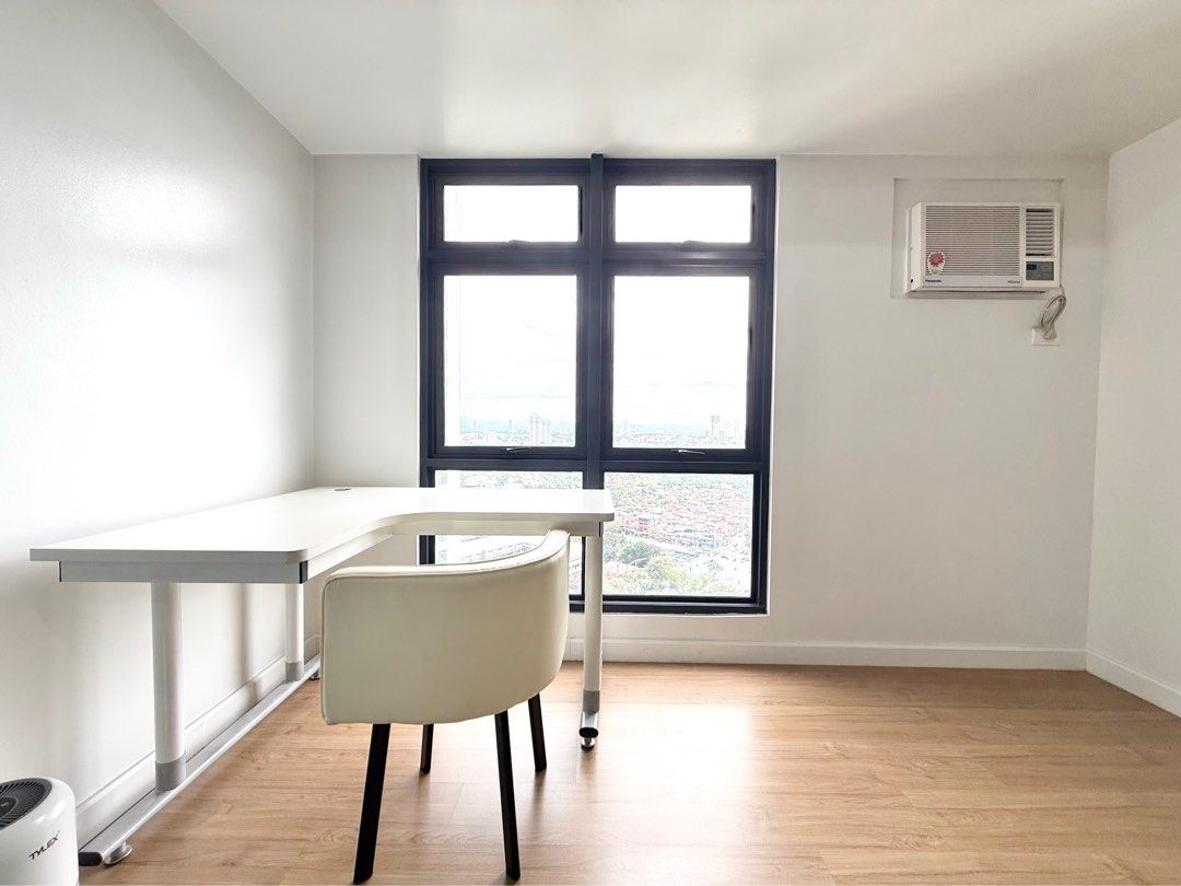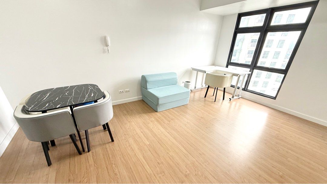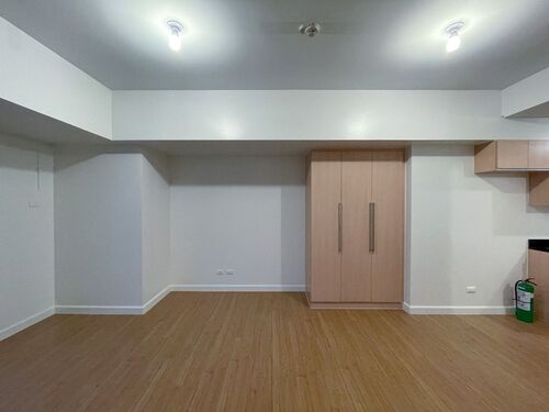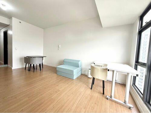 Studio Unit. Floor Area: 32 sqm. Semi Furnished with Inverter window-type air-conditioning unit, multi-point water heater, refrigerator, microwave, air circulator & air purifier, kitchen modular cabinets & closet.