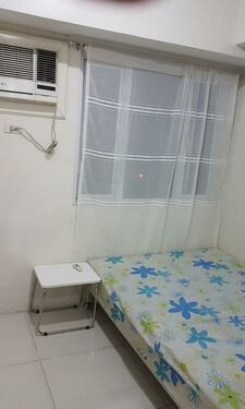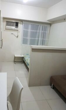 Corner Studio Unit. Floor Area: 23.50 sqm. Fully Furnished with 2 big windows to light the whole studio during day time. 1 window by the bedside and another