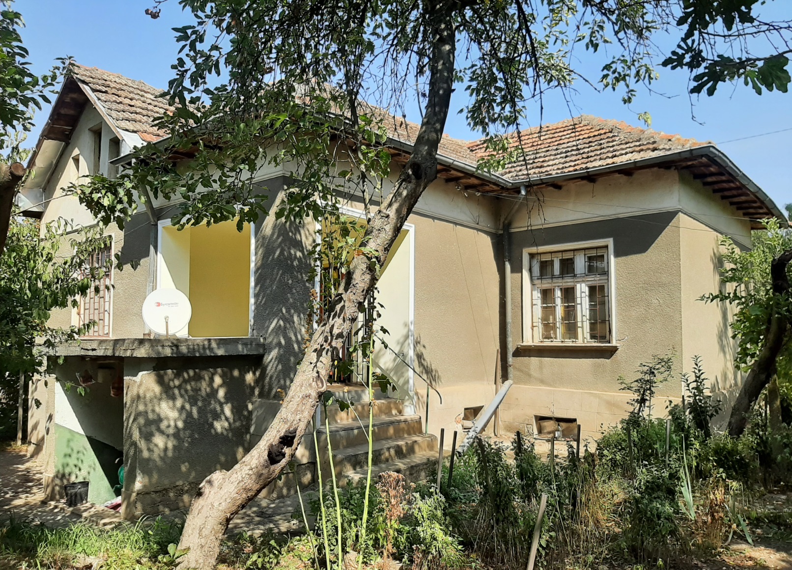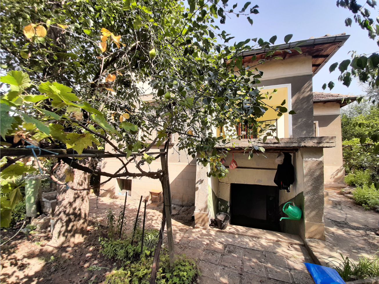 Old country house with plot of land, barn and outbuildings situated in a quiet area within the limits of a big village 50 km northeast of Vratsa, Bulgaria. The property consists of a two-storey house, barn, workshop, storage building and land. The real estate is located at a quiet side street within the limits of the village about five minutes away by foot from the center, bar, grocery store and bus stop. The house has two floors connected by both internal and external stairs. The ground level holds corridor, kitchen, basement and storage room with shower. The second floor has corridor living room and two bedrooms. Next to the house are the storage building and the workshop. The barn is a little bit further away. Near the workshop are the small gate for pedestrians and the big gate for vehicle access into the property. The yard is spacious and holds several fruit trees, some vines, etc. It borders two streets but currently there is no access to the road at the back although one can be made. Some of the houses around are inhabited while others are empty so the surroundings of the property are relatively quiet. The village where this house is situated is one of the biggest and well developed in the area providing several shops and bars, regular bus transport to the nearest town, it also has school, kindergarten, church, park, etc. There is a river passing through the outskirts so those who like fishing can enjoy their hobby at the river banks. The village has good phone and internet reception and is surrounded by farming land. There are no industrial facilities or factories for miles so one can enjoy here plenty of clean, fresh air, peace and quiet. Old rural property with lots of potential for further development.