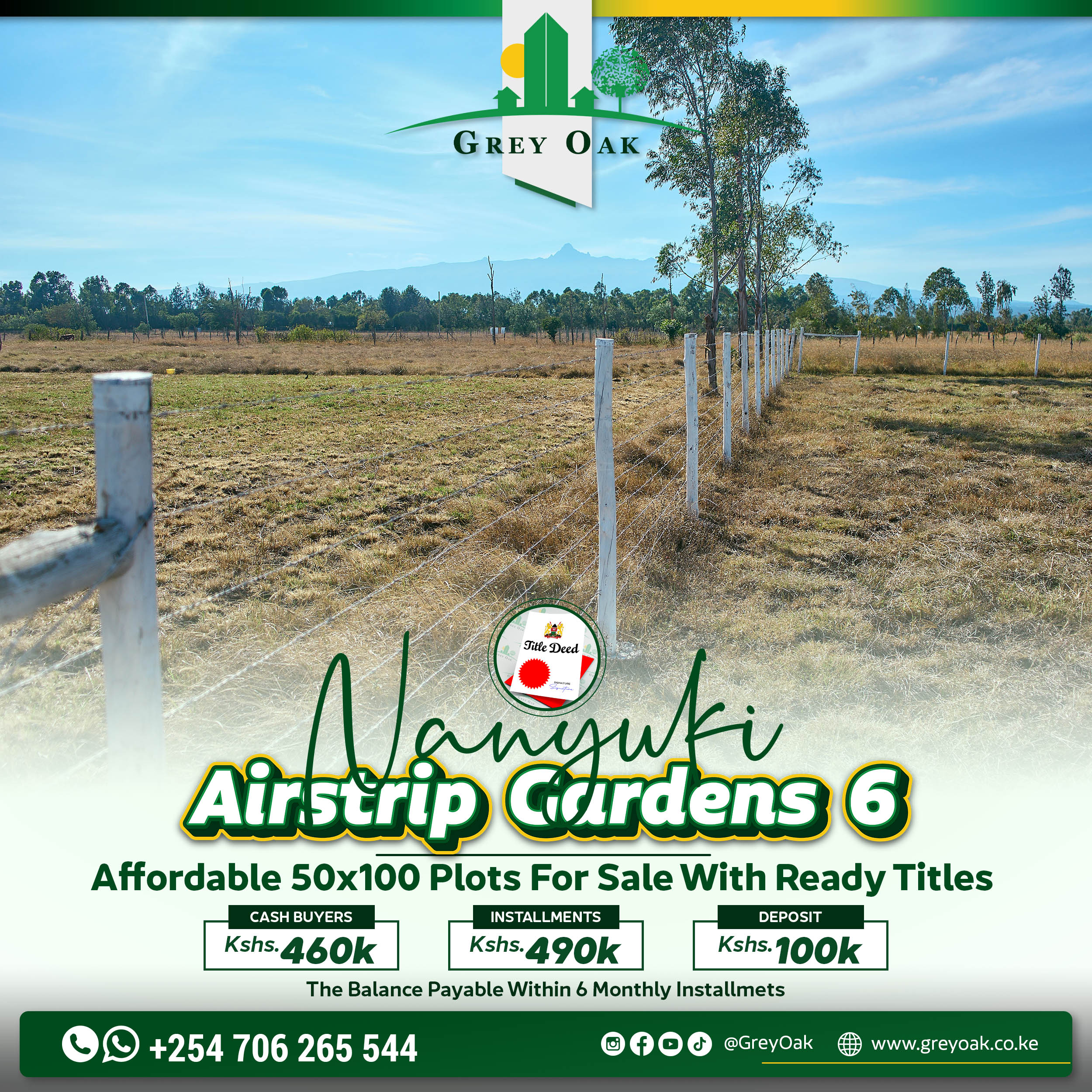 The land is located near the Airstrip and is perfect for those who wish to build a permanent home or even a rental Airbnb for business as tourists are usually flying in and out at the Airstrip. We also have the railway system mode of transport near the area but the most catching description of the place is the breath-taking views of Mount Kenya and the Aberdare Range Hills.