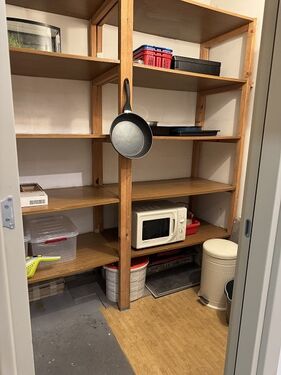 • one large, double pantry with full length and height shelves
