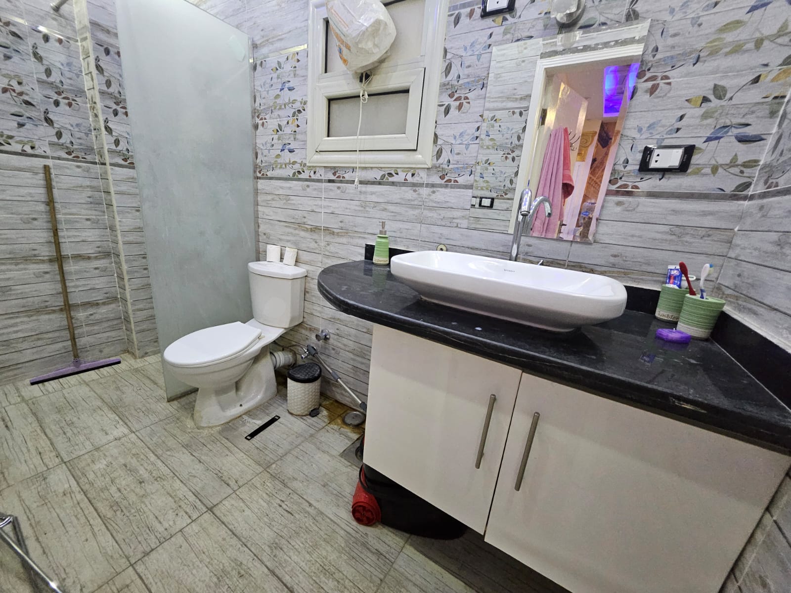 • Bathroom fitted with storage, toilet, shower and sink
