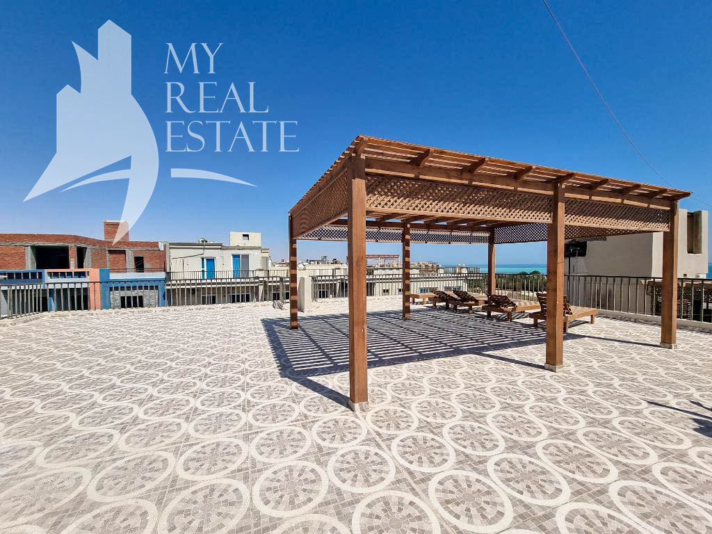 There is communal pool and roof terrace with pergola with fantastic sea views.