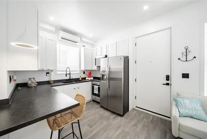 The Casita is designed with simplicity and efficiency in mind. As a result of our patented, innovative manufacturing process, our Casita is able to be installed much faster than most traditional homes. The Casita comes standard with a full kitchen and bathroom, as well as plenty of living space which is perfect for a couch & bed or whatever you envision! In addition to the appliances, our Casita also comes equipped with all the necessary utility hookups such as water, electricity, internet, and sewage which means setup is a breeze & you are ready to live in your new home.