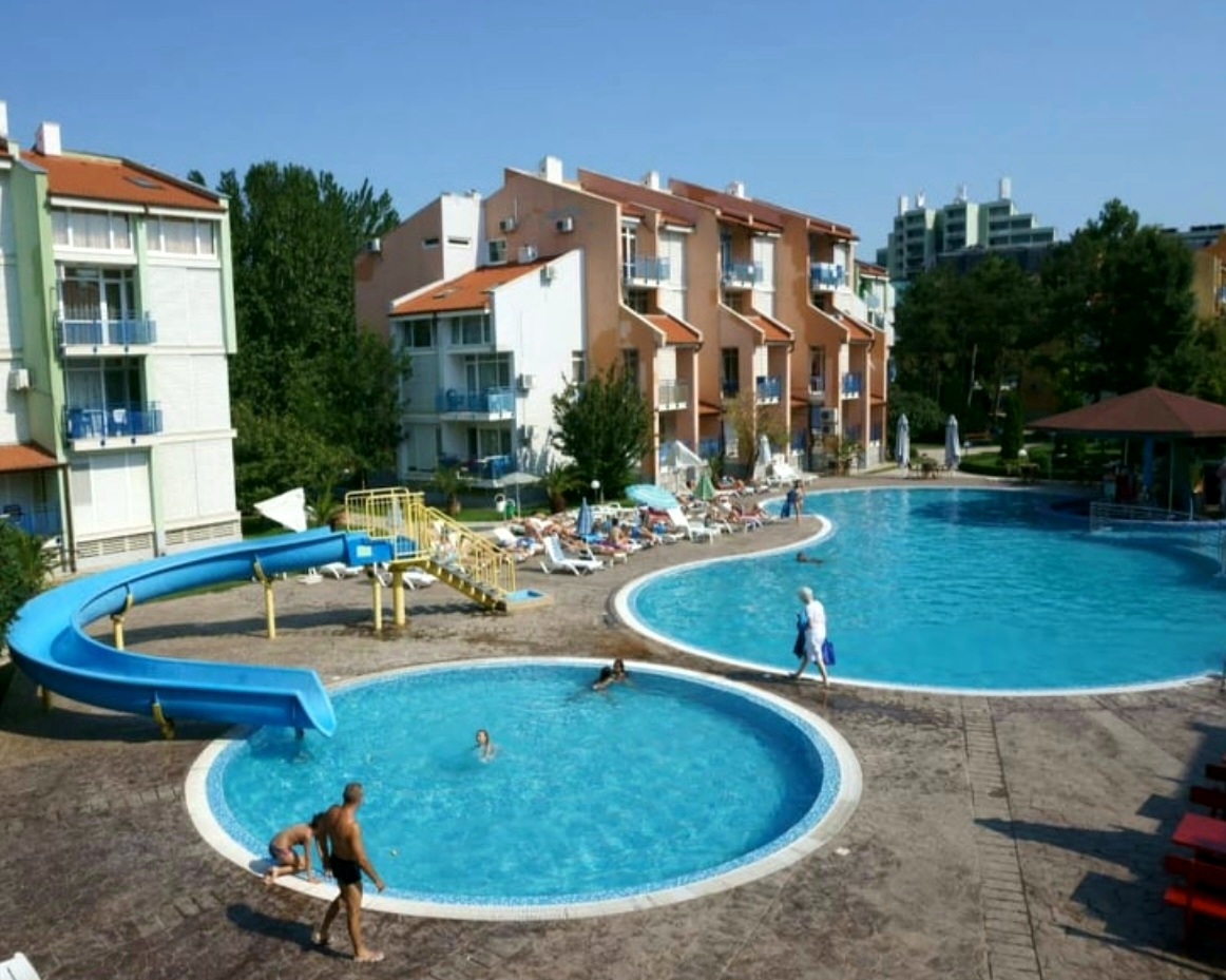 HOLIDAY IN BULGARIA. Apartment in Sunny Beach for rent 5 min walking from the beach. Beautiful complex with a beautiful garden playground and barbecue area, large swimming pool, and separate children's pool with slide, bar, and restaurant. Use of the pool, sun lounger, and parasol is free of charge. It is suitable for 4 people or a family with 2 children. Near the complex is a large grocery store Aldo and Lidl, and 200 meters from it many famous restaurants and bars, located on the main promenade by the sea. Prices: from May -50EUR/night, from June -EUR 60 per night, from July - EUR 70 per night, from August - EUR 80 per night. From September - EUR 60 per night. For booking phone number 00359876909907, WhatsApp, Viber