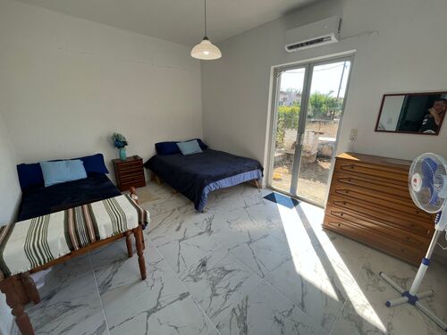 In 200 m2 yard, 70m2 Furnished Seafront House for rent in Koronisia. Pet friendly. First land to the sea. It has 130m2 garden. For who likes privacy, tranquility, safety and want to feel in secure. Full View. 100 meters to the beach.20 meters to lagoon side. 500 meters to new, modern Marina.( Marina belongs to Municipality, so low fee. Two balconies. Front balcony looking to the beach and lagoon, back balcony looking to the garden. 2 bedrooms , 1 kitchen and living room ,1 very big bathroom. Garden fixed with lemon, mandarin, trees. Connect to the mainland with 20 km. asphalt road. 20 minutes to Arta city center. There is one big, modern public city hospital with every department in the city. Except private hospitals. All area is national park and under protection, with Ramsar convention. Long sea season from end of April until end of November. Warm sea water. One of the best place for who likes swimming, fishing windsurfing, kitesurfing so on .. Many small islands very close in the Gulf . Very convenient for yachts. 45 minutes to Preveze Aktion airport. 3 hours to Athens and Thessaloniki airports. Middle of the most touristic places like Syvota, Lefkada, Preveza,Acheron. Ski slopes Metsovo, Karpenisi.Please contact via 00306971609355 (WhatsApp, Telegram, Viber) for details,extra photos, videos and questions.