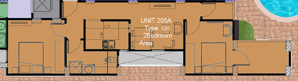 • Two Bedrooms, With a big balcony.