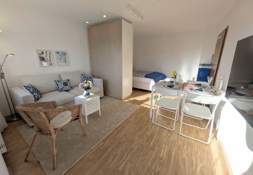 Premium Furnished 2-Room Apartment – All-inclusive Fully furnished and completely newly equipped 2-room apartment offering a quiet, flexible and comfortable temporary home in Munich. Two separate rooms, each with an adjustable bed, private workspace, TV and convertible desk (work ↔ dining). Ideal for expats, professionals, project staff, corporate rentals or couples with guests – no shared flat character. Highlights • 2–6 flexible sleeping options • Two separate rooms – full privacy • Two fully equipped workspaces (home-office ready) • Convertible desks, two TVs • Fully equipped kitchen • Washing machine in the apartment • Fast Wi-Fi • All-inclusive rent (utilities, heating, electricity & internet) • Optional private underground parking Location • Neuperlach Süd U5 & S-Bahn within 3 minutes walking distance • ~20 minutes to Munich Central Station • Supermarket, bakery, pharmacy & restaurants directly nearby • Calisthenics park just 1 minute away 5634382040 zangi