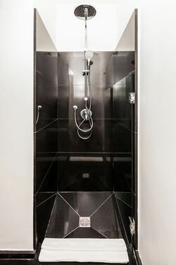 Fully equipped bathroom with: bath towels, hair dryer, make-up mirror soap and shampoo.