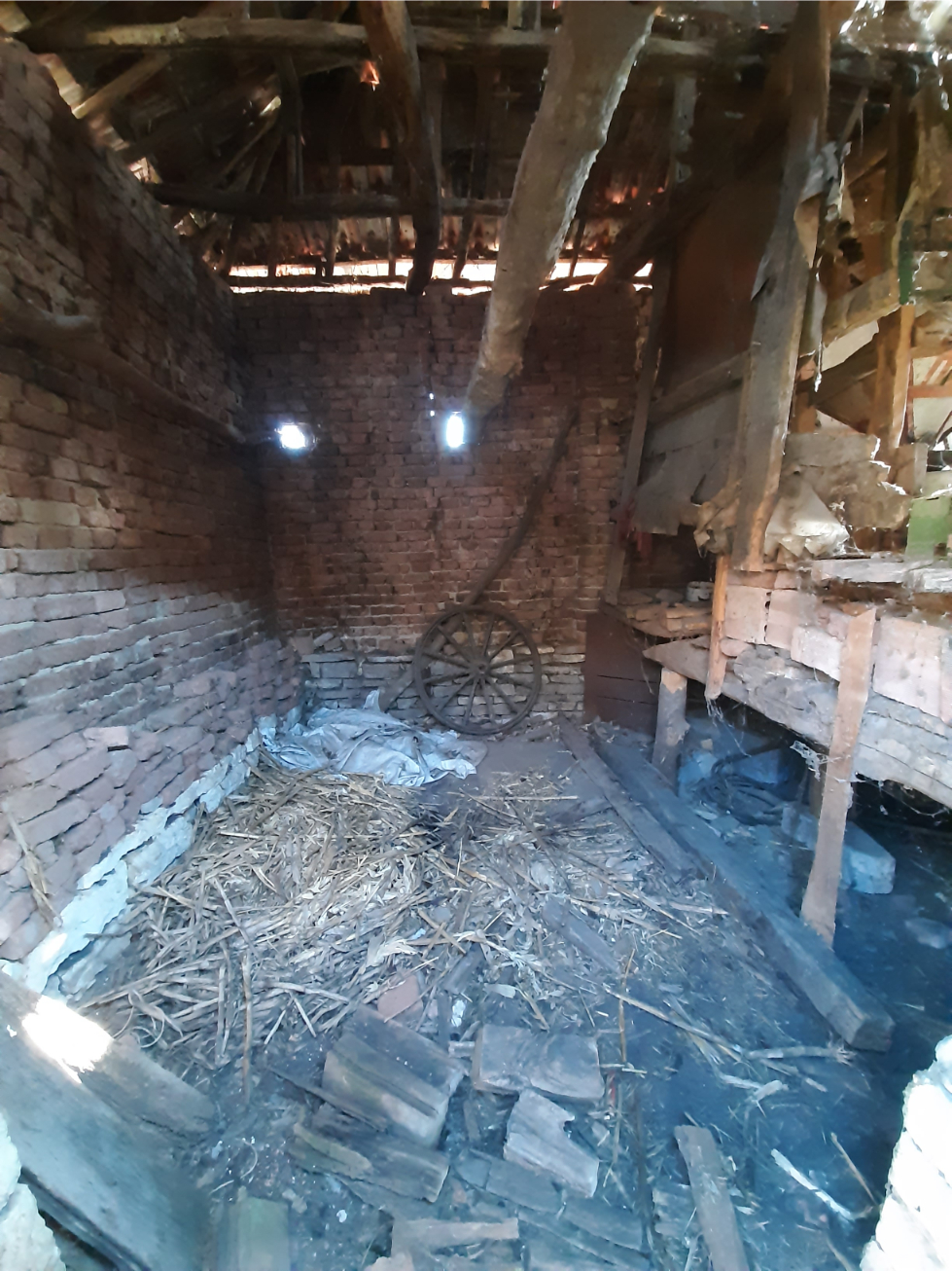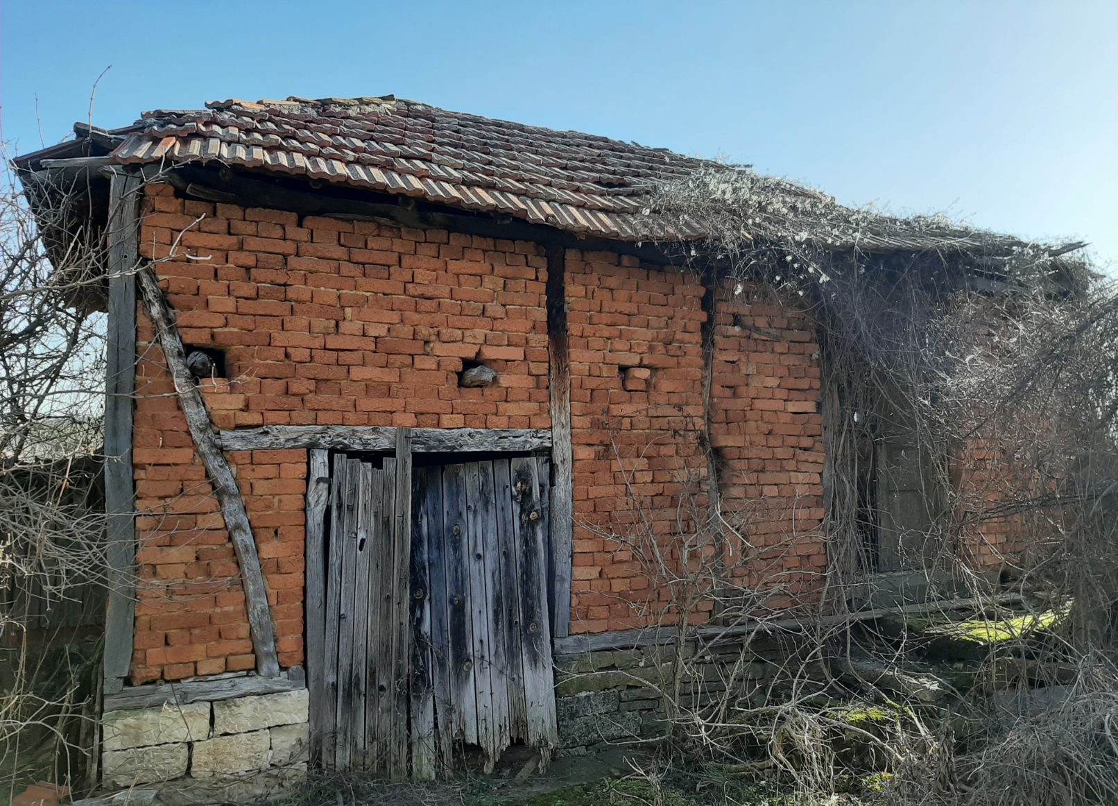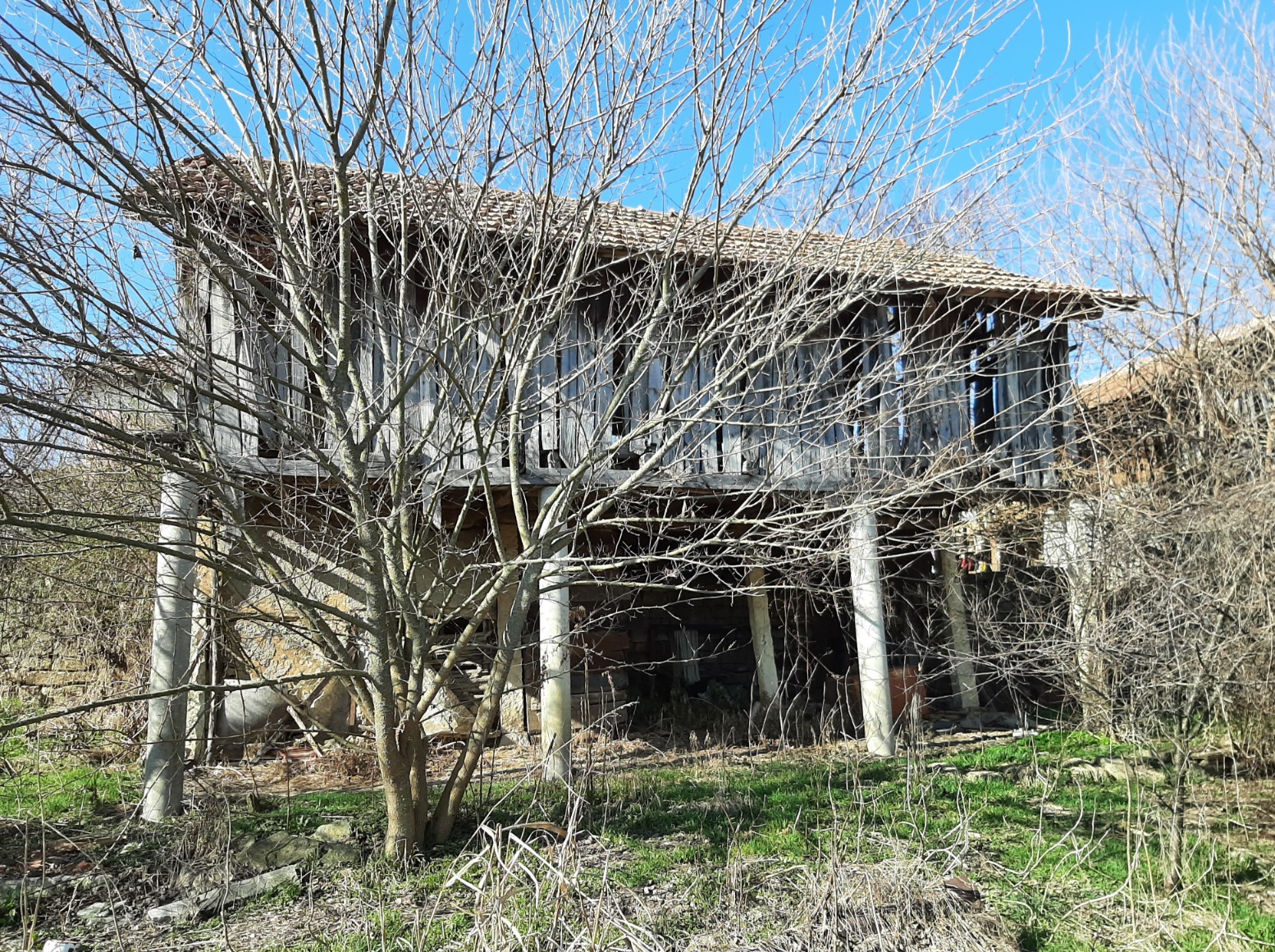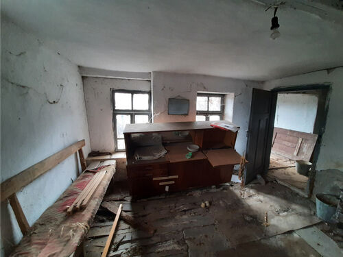 Old rural house with barn and small mill situated in a quiet village 100 km northeast from Sofia, Bulgaria. The property is situated in a quiet spot within the limits of the village. It consists of an old house, derelict barn and an old corn flour mill. The place had been empty for more than two decades now and as visible on the photos time had taken its toll on it. The main building consists of two floors connected via short internal staircase. There are two rooms and a corridor on the ground level while the upper floor holds three premises and terrace. From here one has good observation point towards the yard, the neighborhood, a distant pine forest and some of the hills in the vicinity of the village. The two rooms downstairs are basement and living room, while upstairs one can find living room, bedroom and another premise which was used as closet and storage. The barn situated near the house provided shelter for the animals and was also used to store the food for the livestock as well as a temporary storage area for construction materials, firewood, tools, etc. The mill is situated at the far end corner of the property and is close to the street. Many years ago this building used to serve the needs of the local population from the area using electric power and the necessary equipment to provide corn flour for the households and as food for the animals. Currently the mill is in bad condition and in need of repairs but it can be restored to its previous working condition. The property is located about 6-7 minutes away by foot from the center of the village. There one can find the local mayor`s office, the bar, shop, post office, church, bus stop, etc. The village is surrounded by hills and fields thus providing good conditions for hunters and explorers. The nearest town is less than 10 km away from here and is the center of the local council. There one can find gas stations, hospital, pharmacy, dentist, fire station, police station, bus station, train station, many shops, farmer`s market, administrative services, etc. The regional center Vratsa is 20 km away while the national capital city Sofia and Sofia International Airport are about 90 minutes away by car from here. Cheap rural property with unique features waiting for revival.