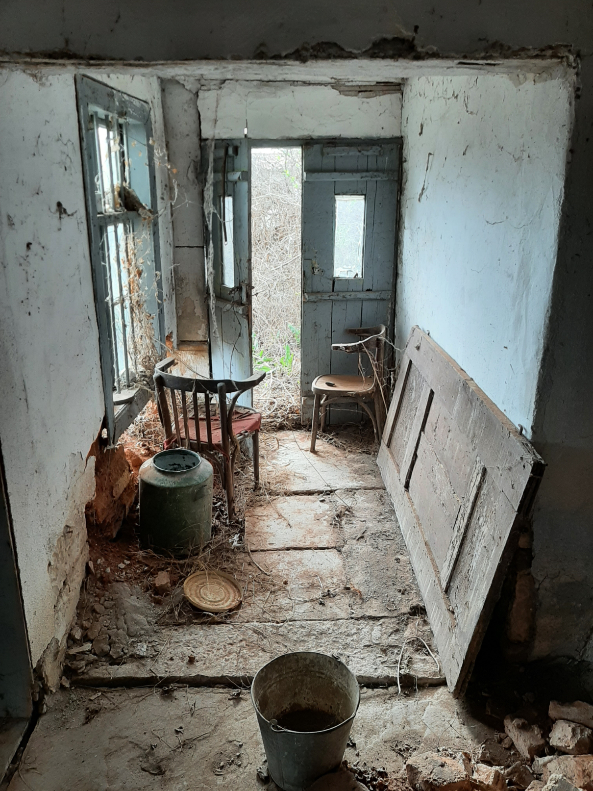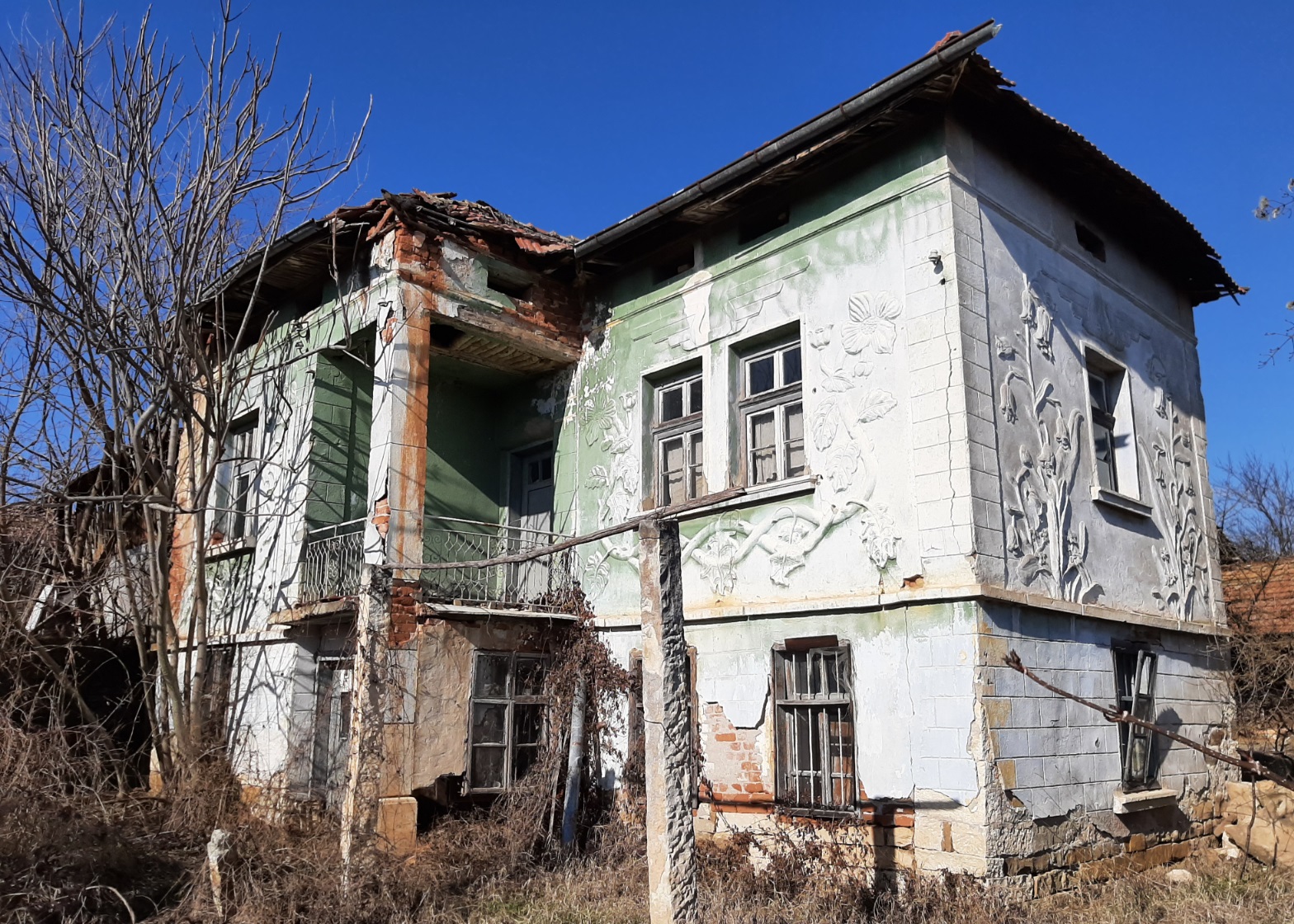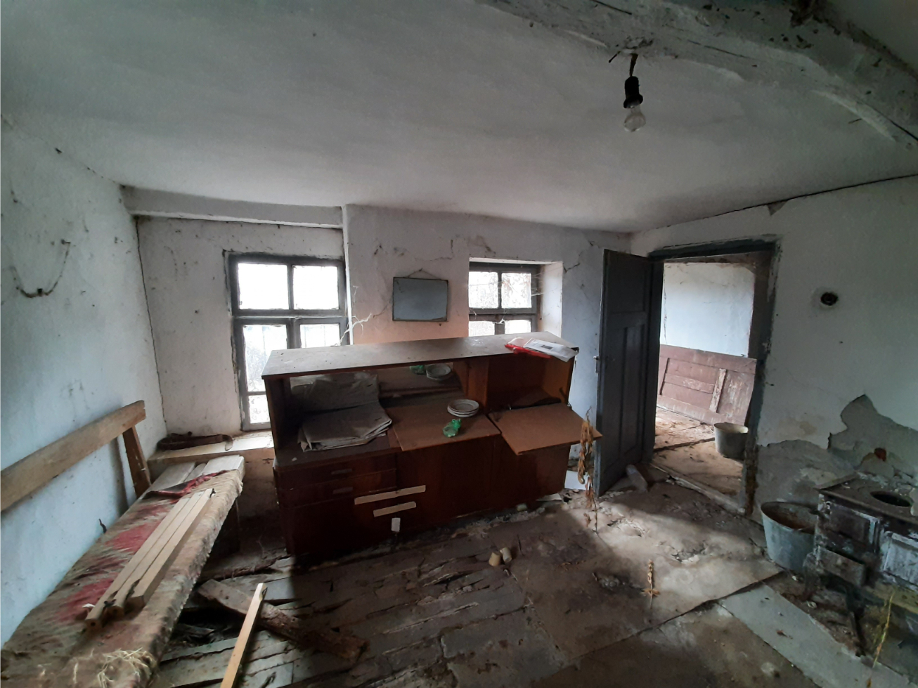 Old rural house with barn and small mill situated in a quiet village 100 km northeast from Sofia, Bulgaria. The property is situated in a quiet spot within the limits of the village. It consists of an old house, derelict barn and an old corn flour mill. The place had been empty for more than two decades now and as visible on the photos time had taken its toll on it. The main building consists of two floors connected via short internal staircase. There are two rooms and a corridor on the ground level while the upper floor holds three premises and terrace. From here one has good observation point towards the yard, the neighborhood, a distant pine forest and some of the hills in the vicinity of the village. The two rooms downstairs are basement and living room, while upstairs one can find living room, bedroom and another premise which was used as closet and storage. The barn situated near the house provided shelter for the animals and was also used to store the food for the livestock as well as a temporary storage area for construction materials, firewood, tools, etc. The mill is situated at the far end corner of the property and is close to the street. Many years ago this building used to serve the needs of the local population from the area using electric power and the necessary equipment to provide corn flour for the households and as food for the animals. Currently the mill is in bad condition and in need of repairs but it can be restored to its previous working condition. The property is located about 6-7 minutes away by foot from the center of the village. There one can find the local mayor`s office, the bar, shop, post office, church, bus stop, etc. The village is surrounded by hills and fields thus providing good conditions for hunters and explorers. The nearest town is less than 10 km away from here and is the center of the local council. There one can find gas stations, hospital, pharmacy, dentist, fire station, police station, bus station, train station, many shops, farmer`s market, administrative services, etc. The regional center Vratsa is 20 km away while the national capital city Sofia and Sofia International Airport are about 90 minutes away by car from here. Cheap rural property with unique features waiting for revival.