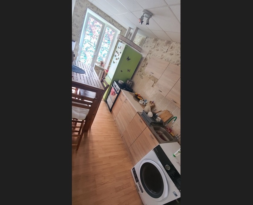 Beautiful Visaginas town, surrounded by forests and lakes (clean and not deep, warm as a tea in the summer for swimming), foxes, rabbits, mooses and deers. Recreational activities, horse riding, kayaks, fishing, skiing, hiking, berry and mushroom picking. Restaurants, public hospital and private medicine centers, Swedbank, vet, cinema, post office and so on, new bus station. A bus runs around town every half an hour, a bus stop is right beside the house, the train station 3 minutes by car, there is a direct train to the capital Vilnius, multiple times a day, from 5am to 7pm. An apartment house has 9 floors, this flat is on the 8th floor and is very warm in the winter, has a balcony, separate kitchen and bathroom, car space (visible down through the window). People here speak Lithuanian and Russian, the youth speak English, we also have some Indian people living here. The town has about 18 000 inhabitants, in the evening is very charming and almost empty, very safe, you can go anywhere in the middle of the night alone. People are friendly, respectful, and very helpful. Kindergarten by the other side of the apartment's house, which is located in the city center, Lidl is 3-minute walk. Multiple shops (up to 11 food stores including XXL sized, which you can see on google maps. The bills are low, only 5-10eu a month for electricity, 15-25 for water, central heating in winter depends on the weather, can be 15-40eu per month, free wifi 24/7 in the square where is Lidl.