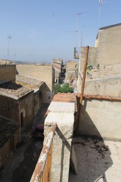 A four storey townhouse in the heart of the Historic Town Centre of Cianciana located at the corner of Via Catania and Salita Chiazza, just a short walk from the main piazza of the town. The ground floor consists of a garage of approximately 25 m² + entrance hallway, and a storage area of approximately 25 m². On the first floor there are two bedrooms and a bathroom with bathtub, the floor occupies a total area of about 58 square meters. On the second floor there are two rooms plus a panoramic terrazza of 18 square meters. On the third floor there is a storage room of about 8 square meters.