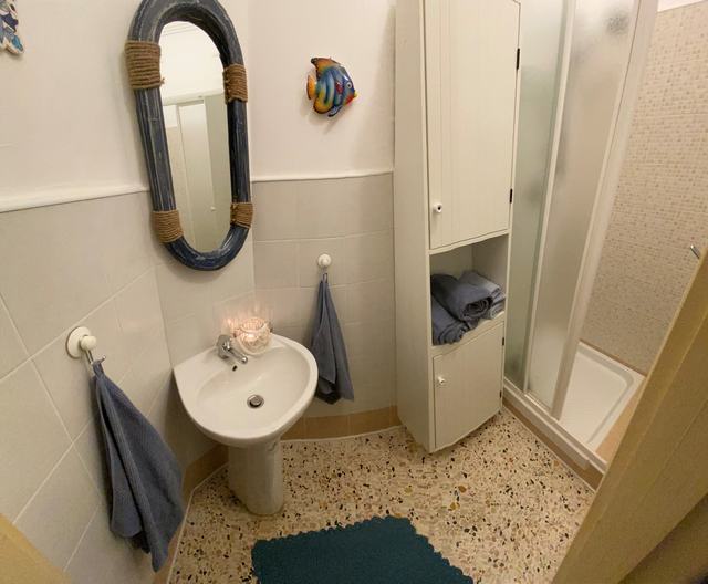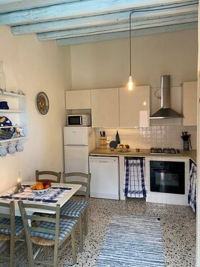 Top floor comprises a fully equipped kitchen in rural style with dishwasher, gas stove, electric oven modern cupboards and air condition unit, directly opening to a roof terrace facing south. Both kitchen and terrace is large enough for a dining set for the perfect indoor/outdoor living