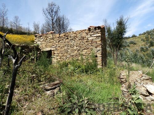 The farm has almost 2 ha and confronts the North with the tarmac road, and has an access on dirt road across the right side of the land and there is a spring at the top. At the bottom there is a small building in schist that can be rebuilt, and has land for cultivation. The area burned there many years, and may be an advantage for those wishing to plant trees of their choice, just as there are many bushes, being safeguarded from the risk of fire for some time.
