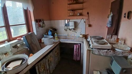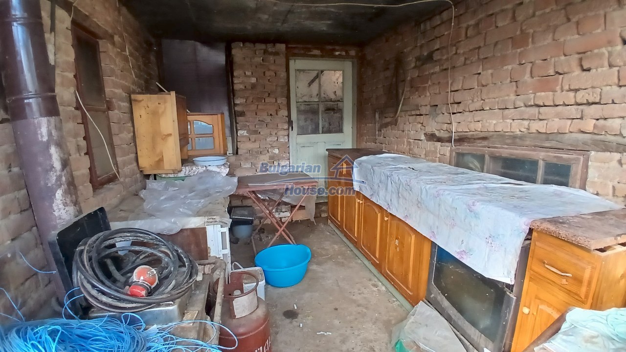 We are pleased to offer you this two - storey brick built up Bulgarian house for sale. The house has living area of around 140 sq.m. and consists of a corridor, living area, one bedroom and a storage place. The floor is cement and windows here has PVC frames. Ceilings has the typical Bulgarian style with wooden beams. Recently covered with some boards, but when doing renovations they can be open.