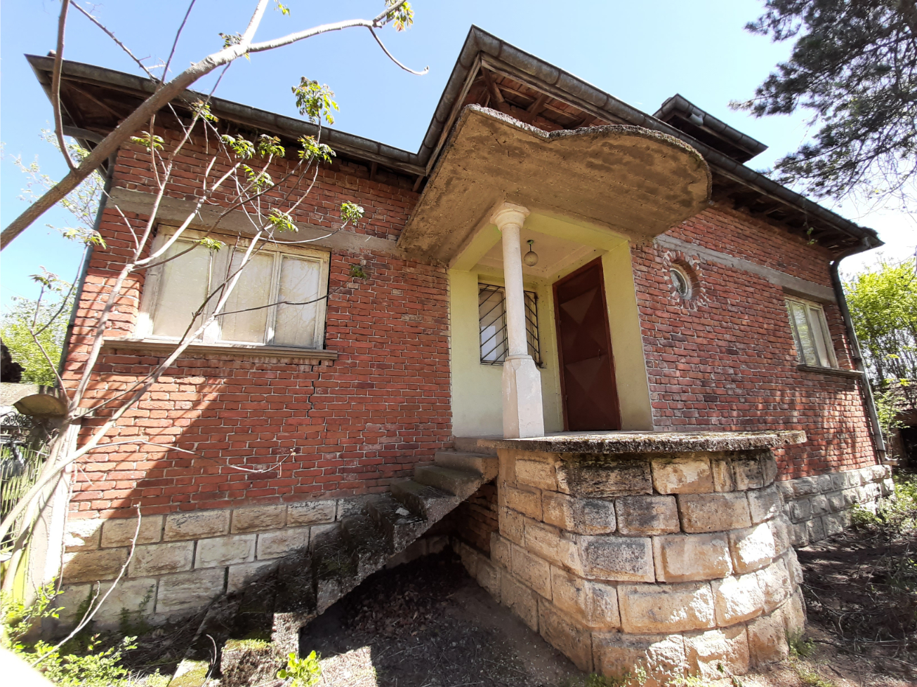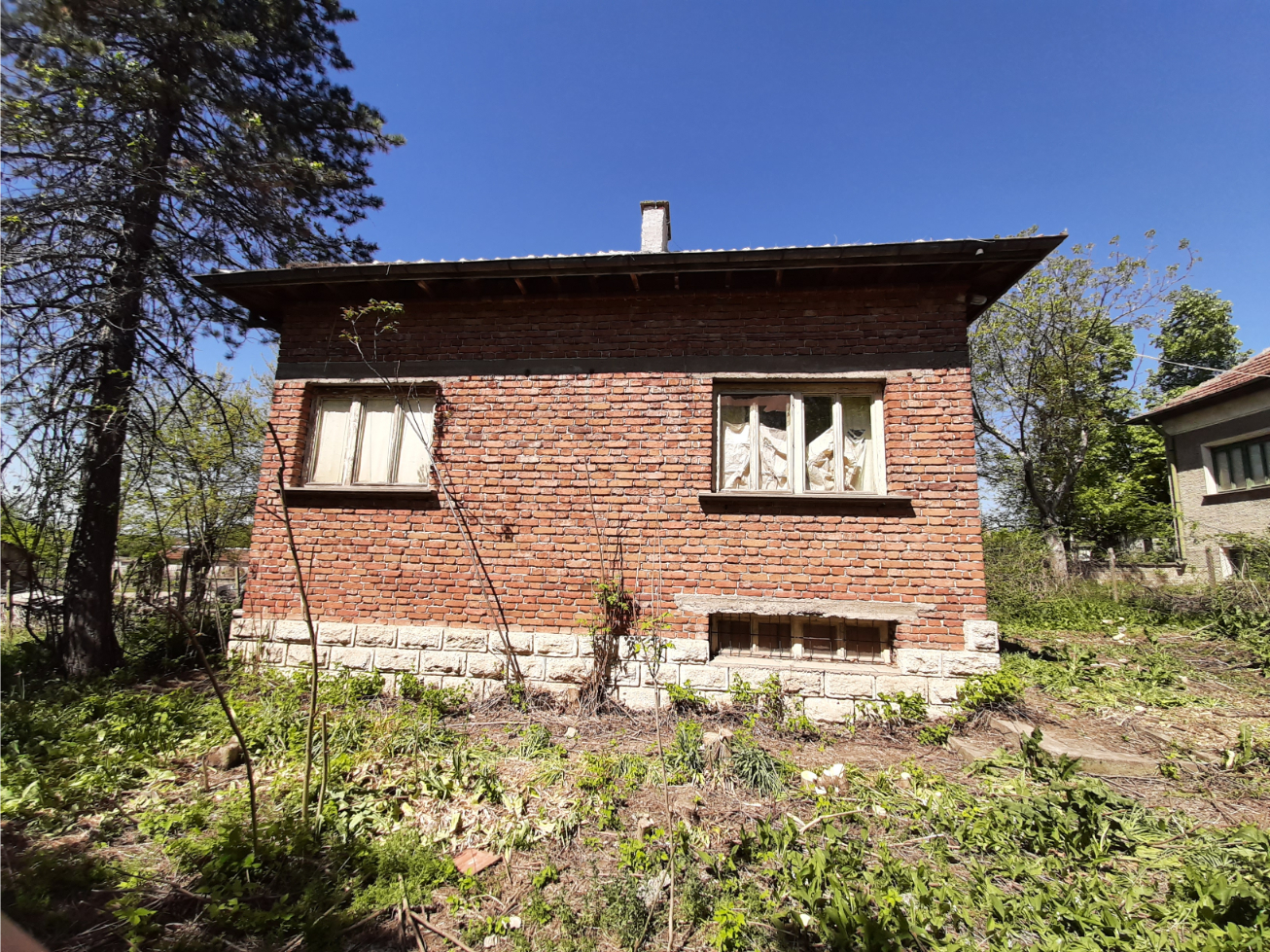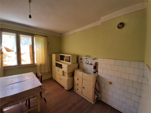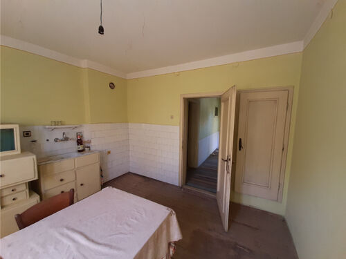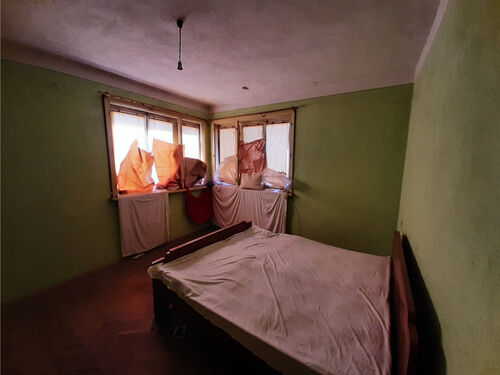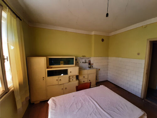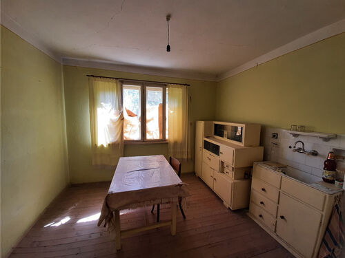 Solid country house with spacious rooms and quiet location situated within a big village near river 50 km north of Vratsa, Bulgaria. The property is located on a quiet side street within the limits of the village. It consists of solid old country house, annex and plot of land. The main building has one floor with four premises and an additional room downstairs. The ground level holds spacious and sun-lit kitchen with dining area, corridor, big living room, two bedrooms and another short corridor. The house had been empty for many years now but the roof was completely revised just recently and the yard is being cleared. All rooms inside (except the basement) have parquet floors and provide lots of space and natural light coming in. The house has very solid foundations made of carved stone blocks and well done masonry. It has some unique features which make it stand out and differ from all other properties around. The annex located a little to the side and the back of the house has one room and some additional storage space. Back in the old days this place served as living room with kitchenette and dining area and was primarily used during the spring till autumn season. The yard is relatively small to medium by size but is good enough for those who don`t want to spend most of their free time cutting grass, bushes and trees. Nevertheless there is enough space here for additional structures such as barn, garage, workshop, as well as for vegetable garden, fruit trees, swimming pool, gazebo, children playground, BBQ area, garage, etc. The property is about 6-7 minutes away by foot from the center of the village where one can find several shops, post office, the mayor`s office, café-bars, public park, construction material shop, small library, bus stop, school, kindergarten, church, etc. The village where this house is situated is big and developed. It is situated 10 km away from the seat of the local council, the town of Byala Slatina. There one can find many amenities such as hotel, gas stations, car service stations, furniture store, construction material stores, supermarkets and grocery stores, restaurants and bars, banks and ATMs, administrative services, farmer`s market, police station, fire station, hospital, dentist, shops for clothes, shoes, electric appliances, etc. The village is located about 50 km north from the regional capital Vratsa. The national capital city Sofia is about 160 km away from here and the village has daily bus service to there, to Vratsa and to Byala Slatina. The area around the village consists mainly of fields and small hills and the main business around is farming so the locals can enjoy lots of fresh food, clean air and plenty of peace and quiet all year round. The river and the surrounding area of the settlement provide very good conditions for hunting, fishing and camping. Solid house with good sized garden, revised roof and spacious rooms waiting for new owners.