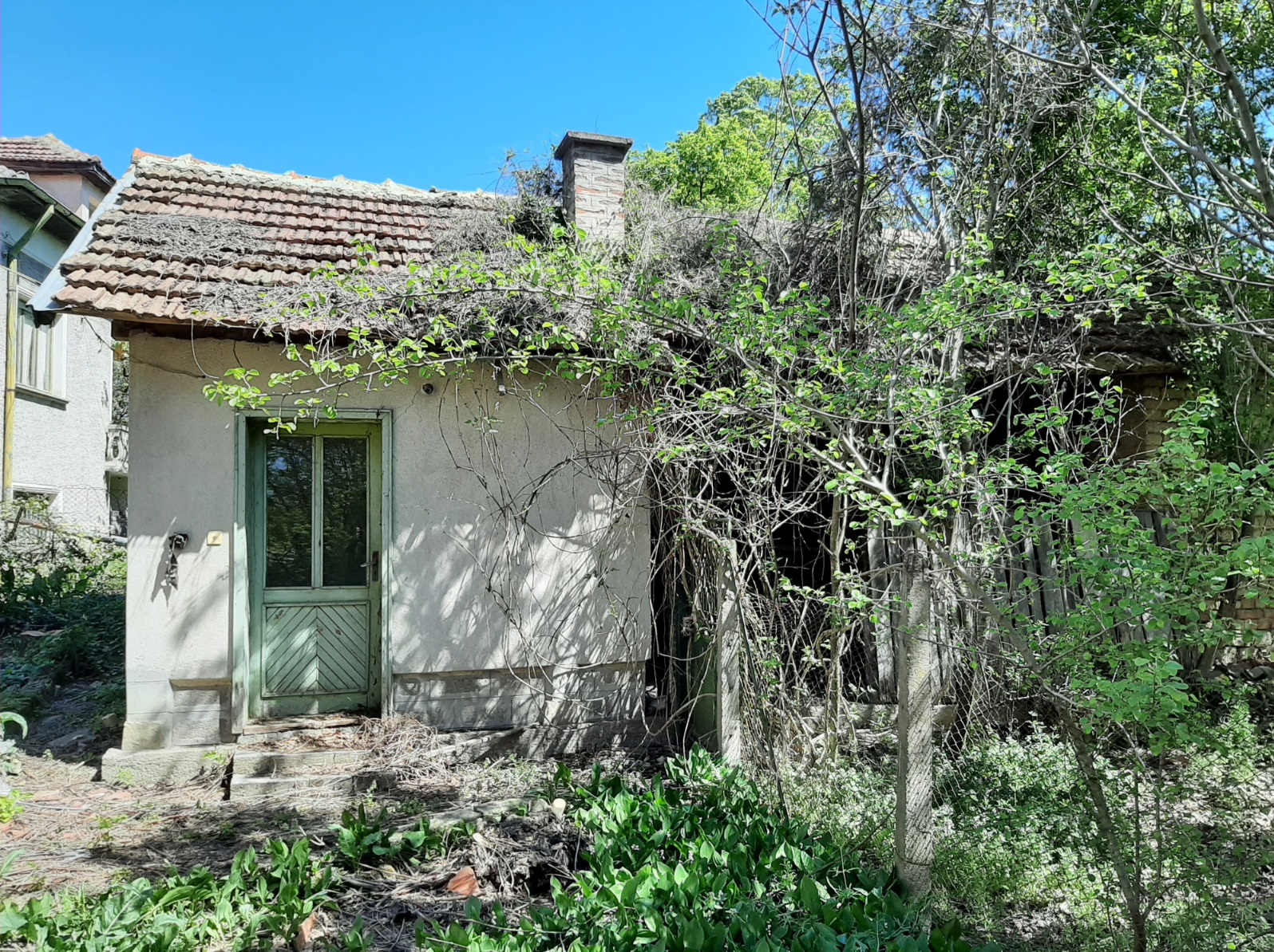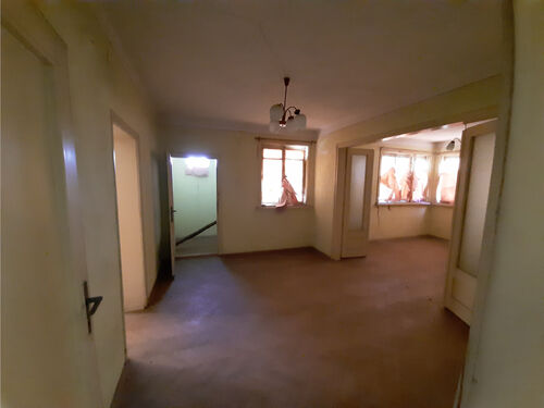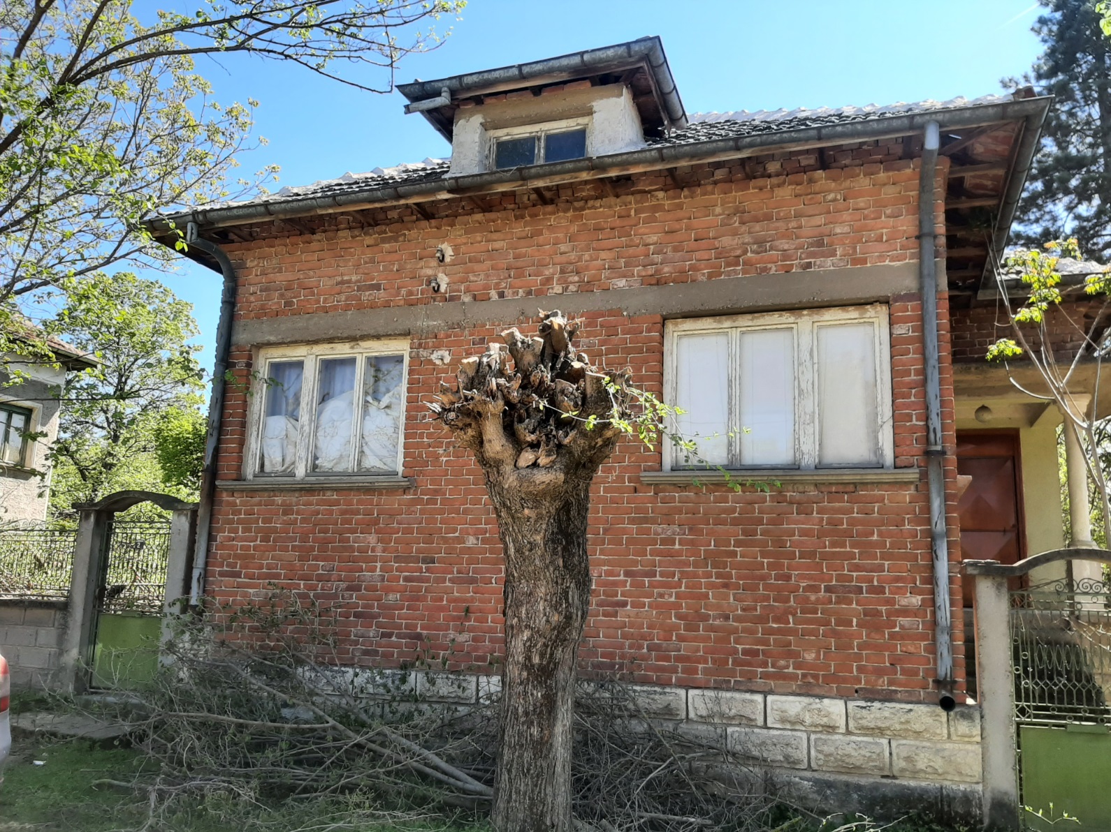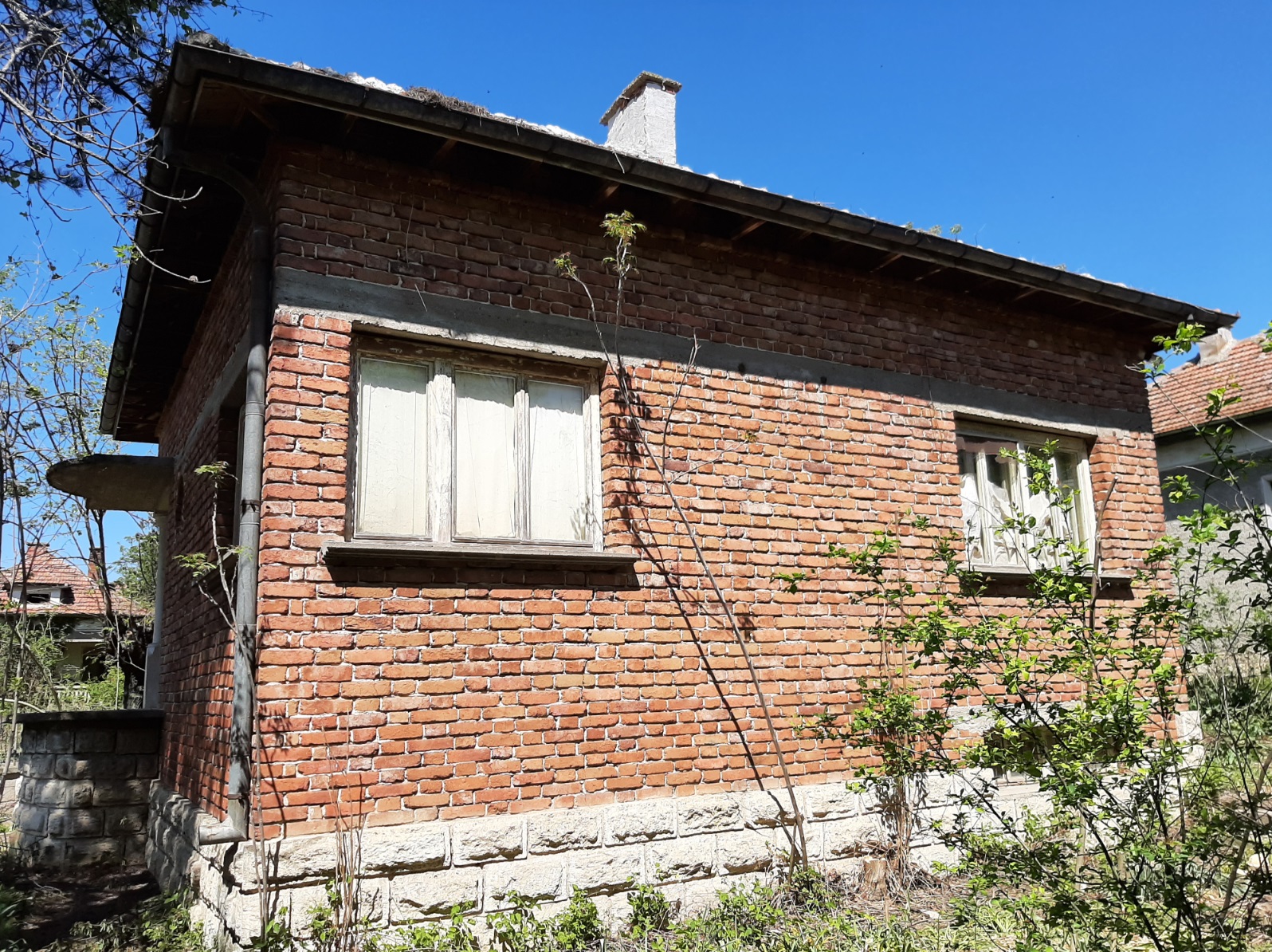 Solid country house with spacious rooms and quiet location situated within a big village near river 50 km north of Vratsa, Bulgaria. The property is located on a quiet side street within the limits of the village. It consists of solid old country house, annex and plot of land. The main building has one floor with four premises and an additional room downstairs. The ground level holds spacious and sun-lit kitchen with dining area, corridor, big living room, two bedrooms and another short corridor. The house had been empty for many years now but the roof was completely revised just recently and the yard is being cleared. All rooms inside (except the basement) have parquet floors and provide lots of space and natural light coming in. The house has very solid foundations made of carved stone blocks and well done masonry. It has some unique features which make it stand out and differ from all other properties around. The annex located a little to the side and the back of the house has one room and some additional storage space. Back in the old days this place served as living room with kitchenette and dining area and was primarily used during the spring till autumn season. The yard is relatively small to medium by size but is good enough for those who don`t want to spend most of their free time cutting grass, bushes and trees. Nevertheless there is enough space here for additional structures such as barn, garage, workshop, as well as for vegetable garden, fruit trees, swimming pool, gazebo, children playground, BBQ area, garage, etc. The property is about 6-7 minutes away by foot from the center of the village where one can find several shops, post office, the mayor`s office, café-bars, public park, construction material shop, small library, bus stop, school, kindergarten, church, etc. The village where this house is situated is big and developed. It is situated 10 km away from the seat of the local council, the town of Byala Slatina. There one can find many amenities such as hotel, gas stations, car service stations, furniture store, construction material stores, supermarkets and grocery stores, restaurants and bars, banks and ATMs, administrative services, farmer`s market, police station, fire station, hospital, dentist, shops for clothes, shoes, electric appliances, etc. The village is located about 50 km north from the regional capital Vratsa. The national capital city Sofia is about 160 km away from here and the village has daily bus service to there, to Vratsa and to Byala Slatina. The area around the village consists mainly of fields and small hills and the main business around is farming so the locals can enjoy lots of fresh food, clean air and plenty of peace and quiet all year round. The river and the surrounding area of the settlement provide very good conditions for hunting, fishing and camping. Solid house with good sized garden, revised roof and spacious rooms waiting for new owners.