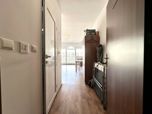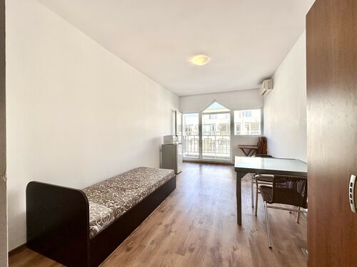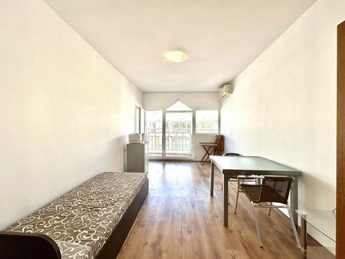 IBG Real Estates offers for sale this studio apartment, located on the 6th floor (with elevator) in Gerber 4 complex, Sunny Beach. The complex is in one of the greenest areas of the resort, only about 500 meters to the beach, and close to shops, restaurants, and supermarket Mladost.
