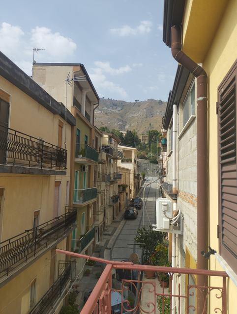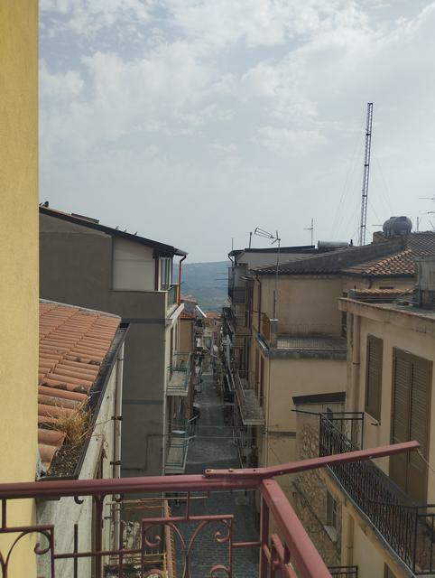 Three storey townhouse which covers an area of approximately 30 m2 per floor for a total surface area of approximately 90 m2. On the ground floor we find a kitchen, a room and a bathroom. The first floor consists of a large room overlooking the balcony, a bathroom and a small room. The second floor consists of a single room with veranda and terazza. The house is located in Via Fidanza in the heart of the Historic Center of Cianciana, a few steps from the main piazza of the town.