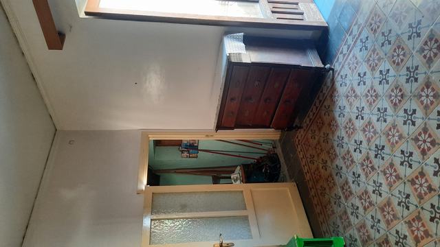 The ground floor is made up of three rooms (with access from house numbers 5 and 7), two of which with direct light from the façade, plus a bathroom with tub and a closet under the stairs. In the dining room, with direct light from the window that can be seen in the elevation photos, there is a kitchenette powered by butane gas.