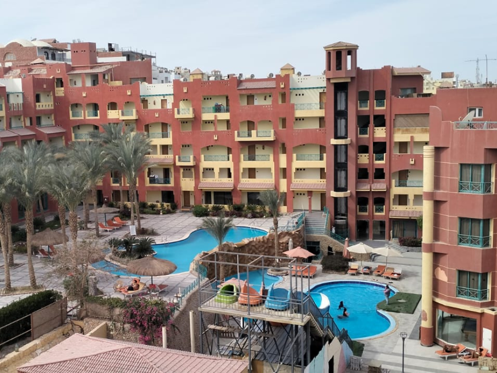 the road is right next to sun & sea hotel and in front of sunrise holidays resort cross the road to the beach and walk distance to hurghada port also the marina and ten minutes drive to hurghada airport. the project benefits from a full range of amenities and services including three entrances with three elevators. underground parking. a swimming pool. a gym. a spa. restaurants. bars. and a shopping mall.