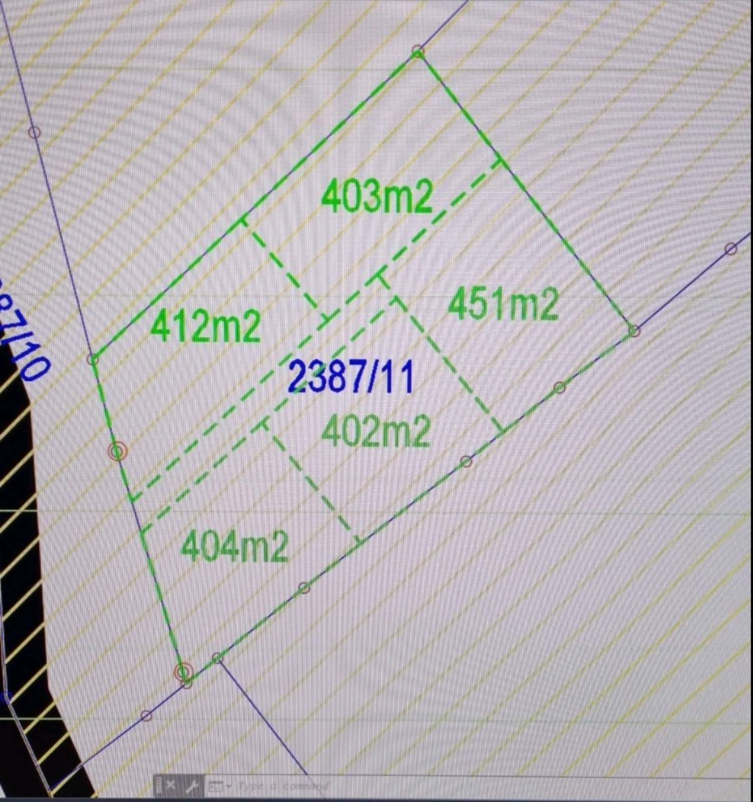 The plots are all a little over 4 ares, you can see in the picture. Building land.